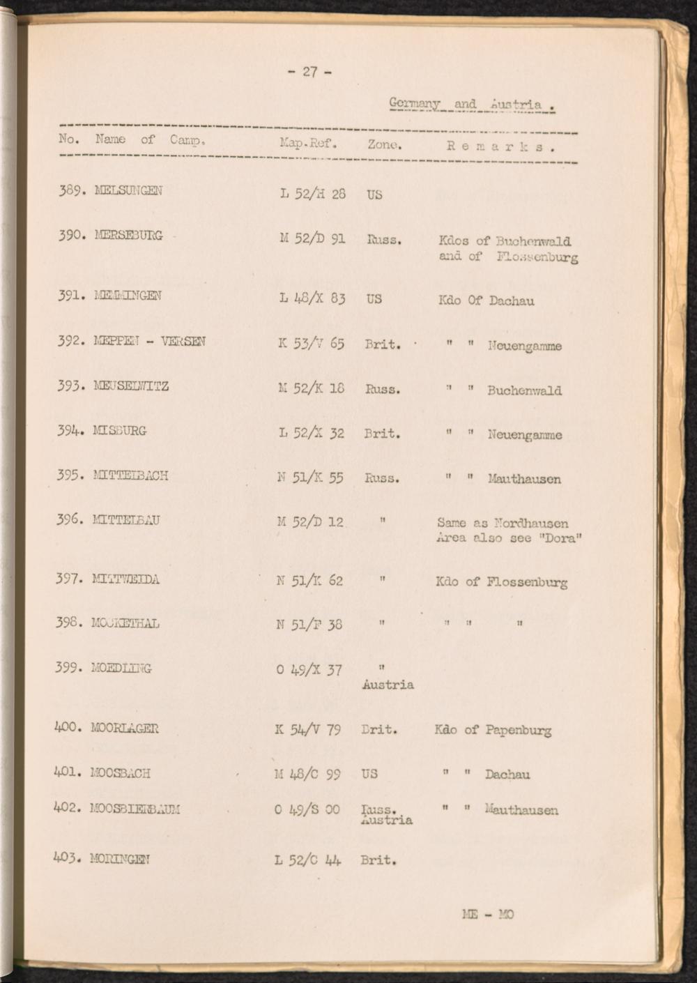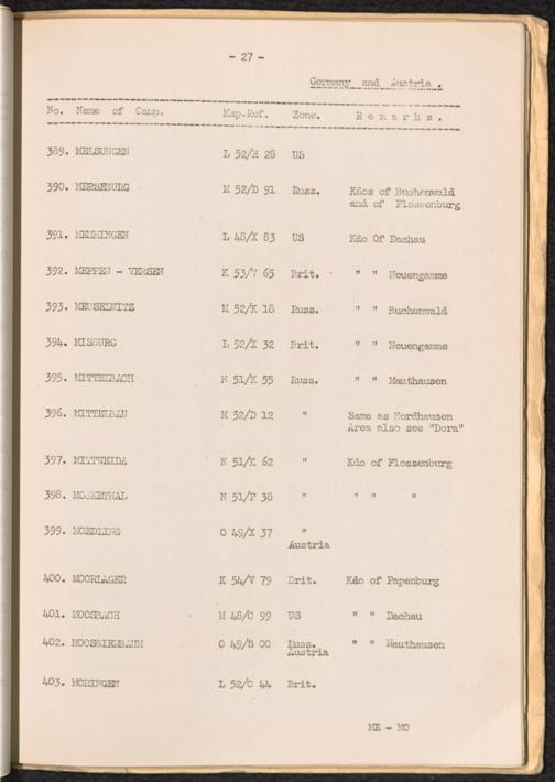List of Concentration Camps and their Kommandos in Germany and Occupied Countries... Germany and Austria