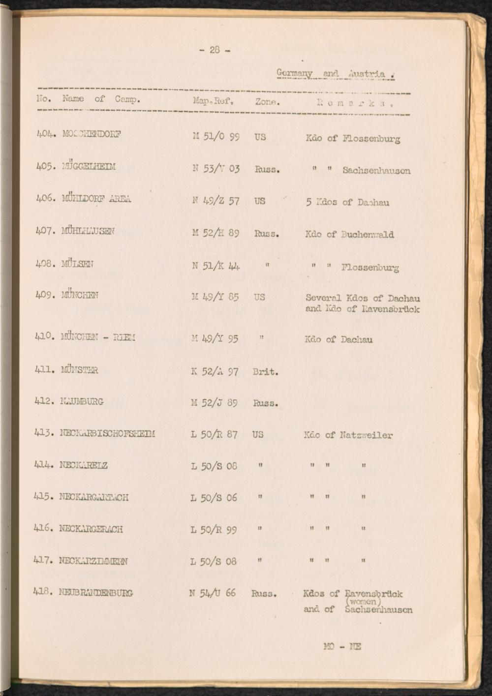 List of Concentration Camps and their Kommandos in Germany and Occupied Countries... Germany and Austria