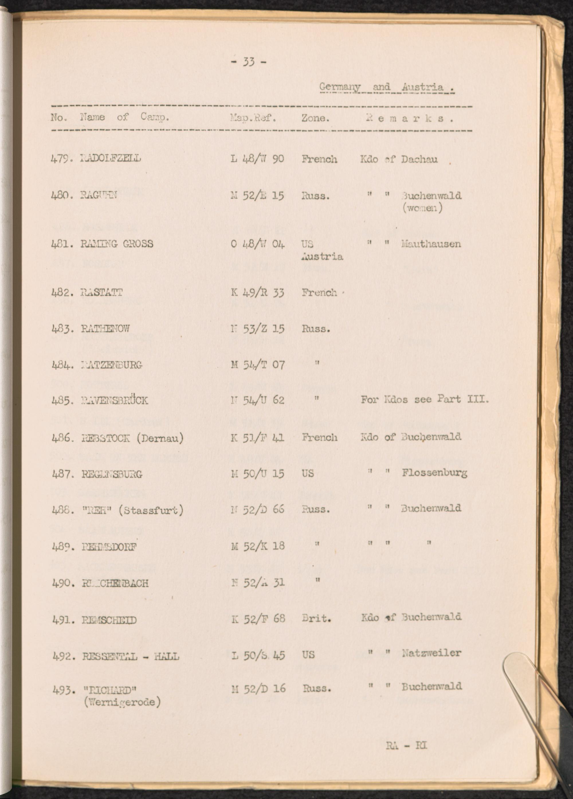 List of Concentration Camps and their Kommandos in Germany and Occupied Countries 1939 - 1945 / United Nations Relief and Rehabilitation Administration