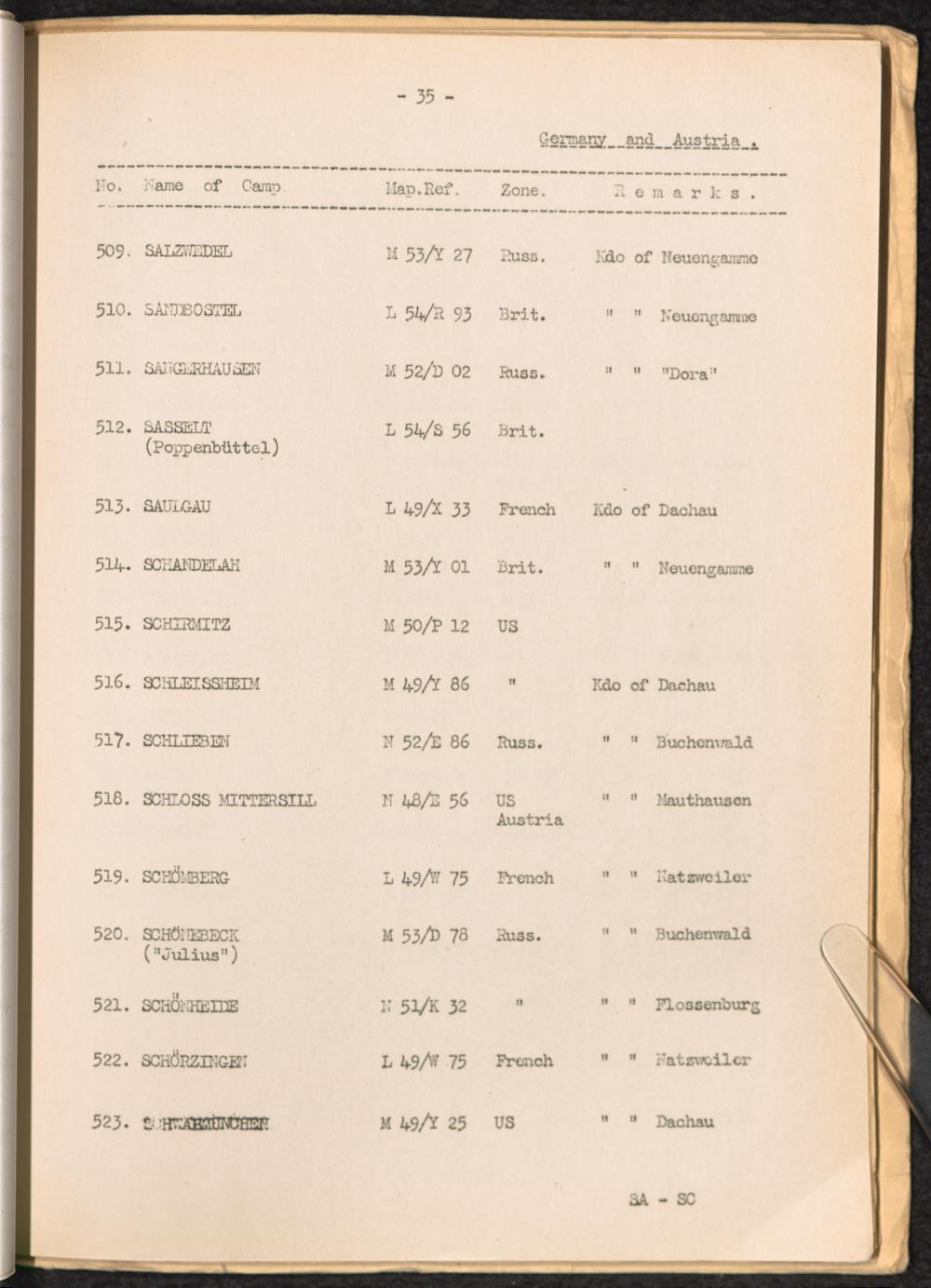 List of Concentration Camps and their Kommandos in Germany and Occupied Countries... Germany and Austria