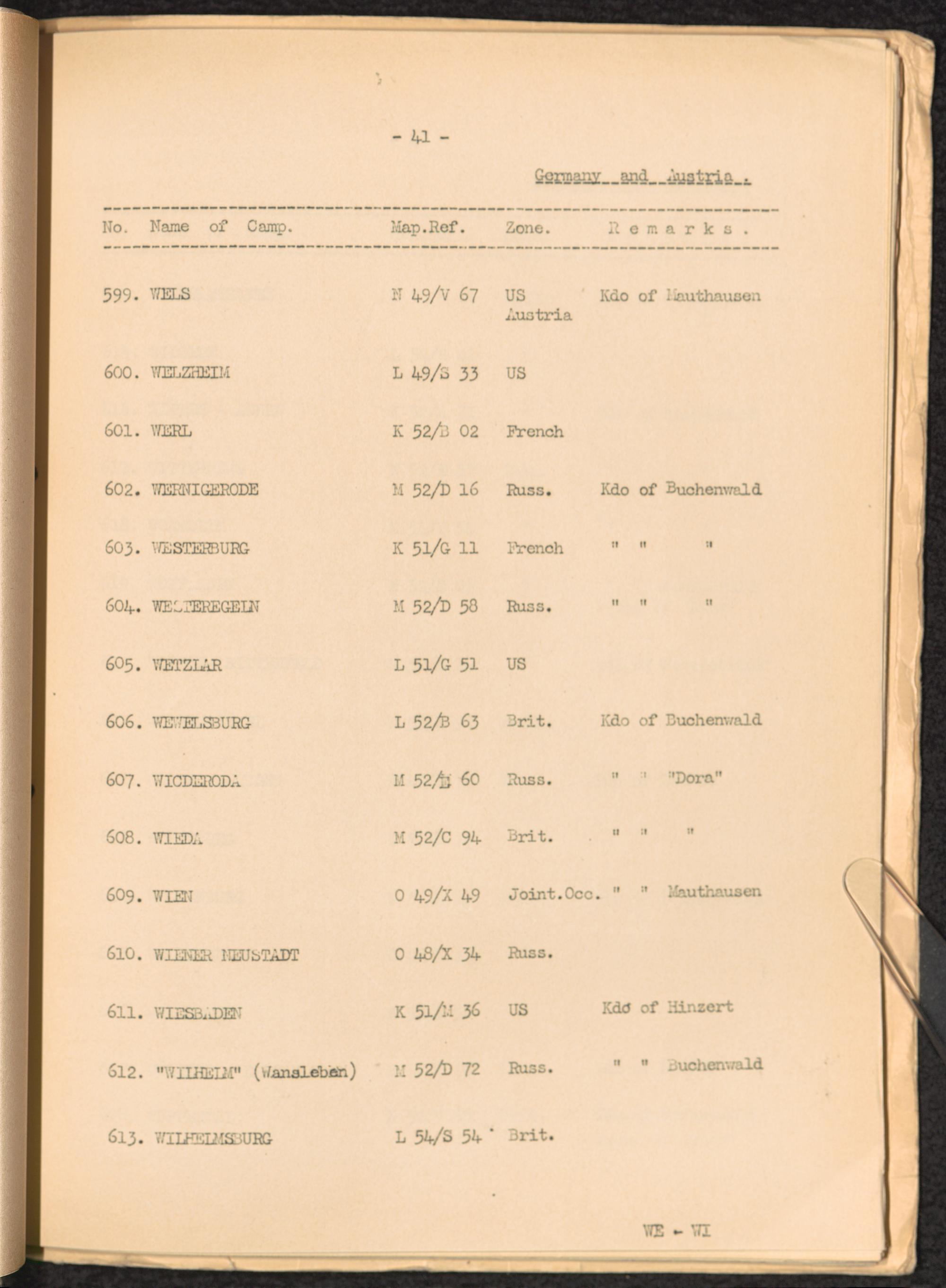 List of Concentration Camps and their Kommandos in Germany and Occupied Countries... Germany and Austria