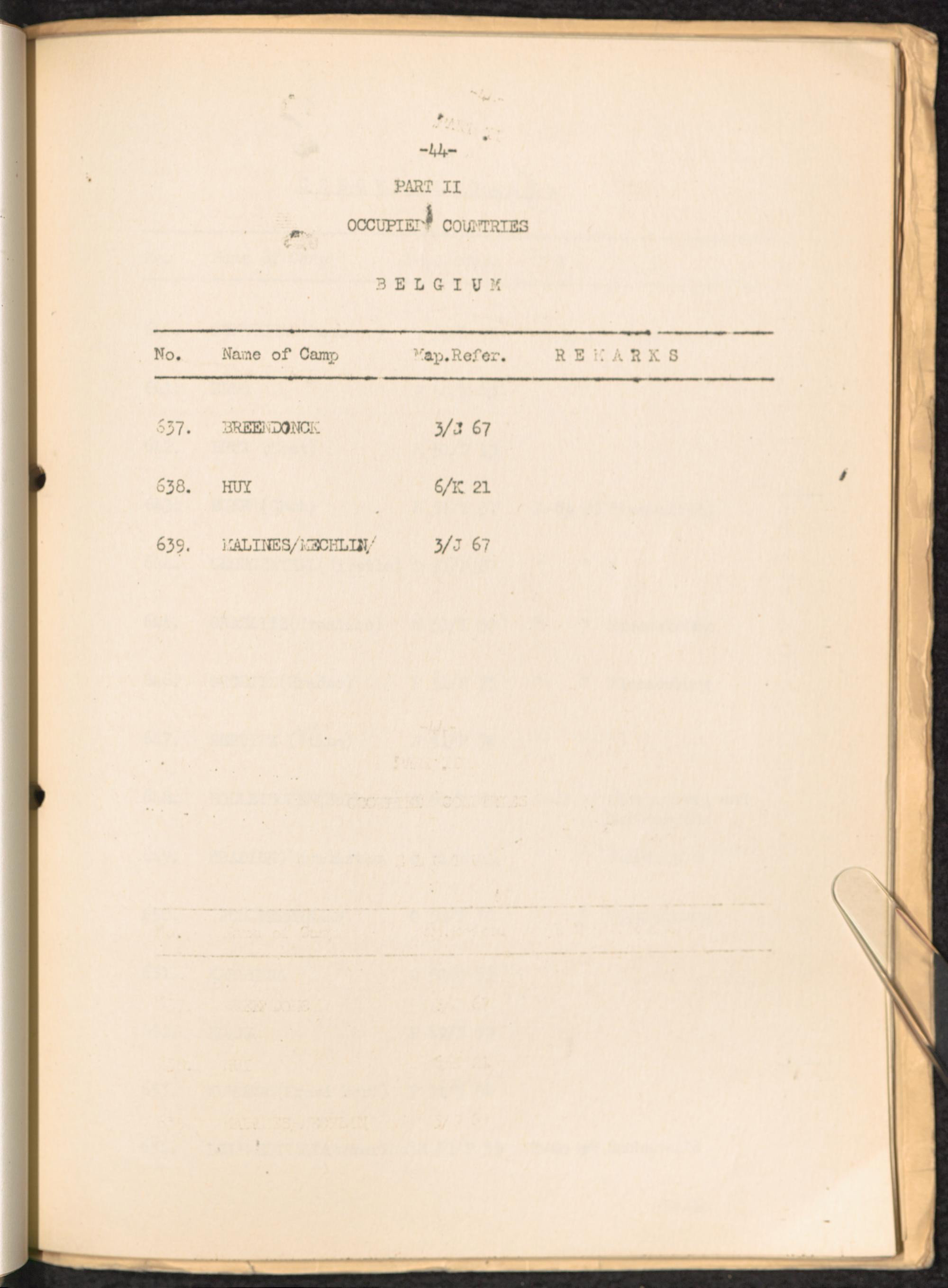 List of Concentration Camps and their Kommandos in Germany and Occupied Countries... Belgium