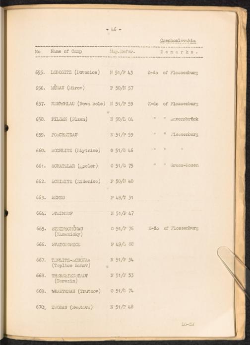 List of Concentration Camps and their Kommandos in Germany and Occupied Countries... Czechoslovakia