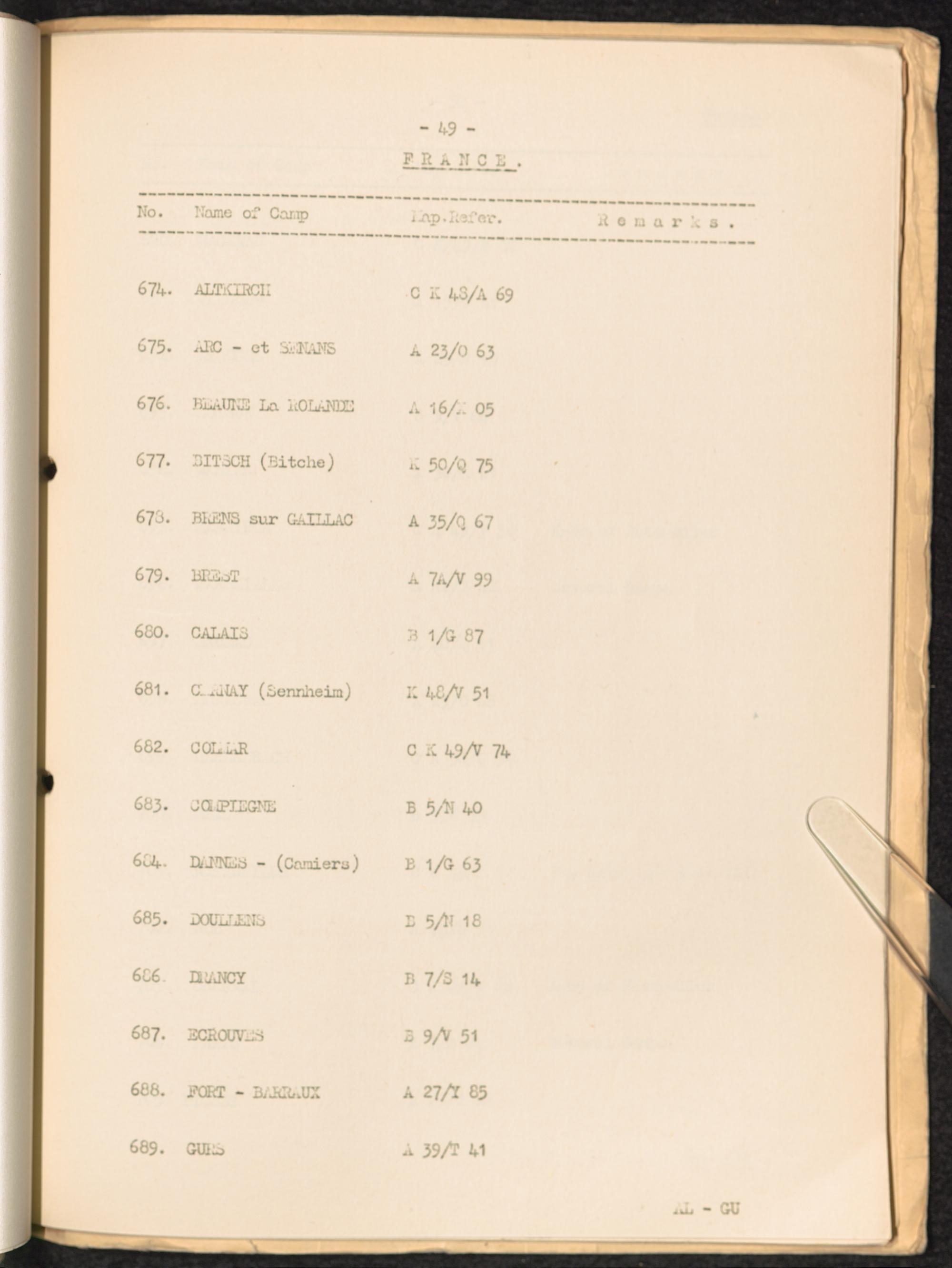 List of Concentration Camps and their Kommandos in Germany and Occupied Countries... France