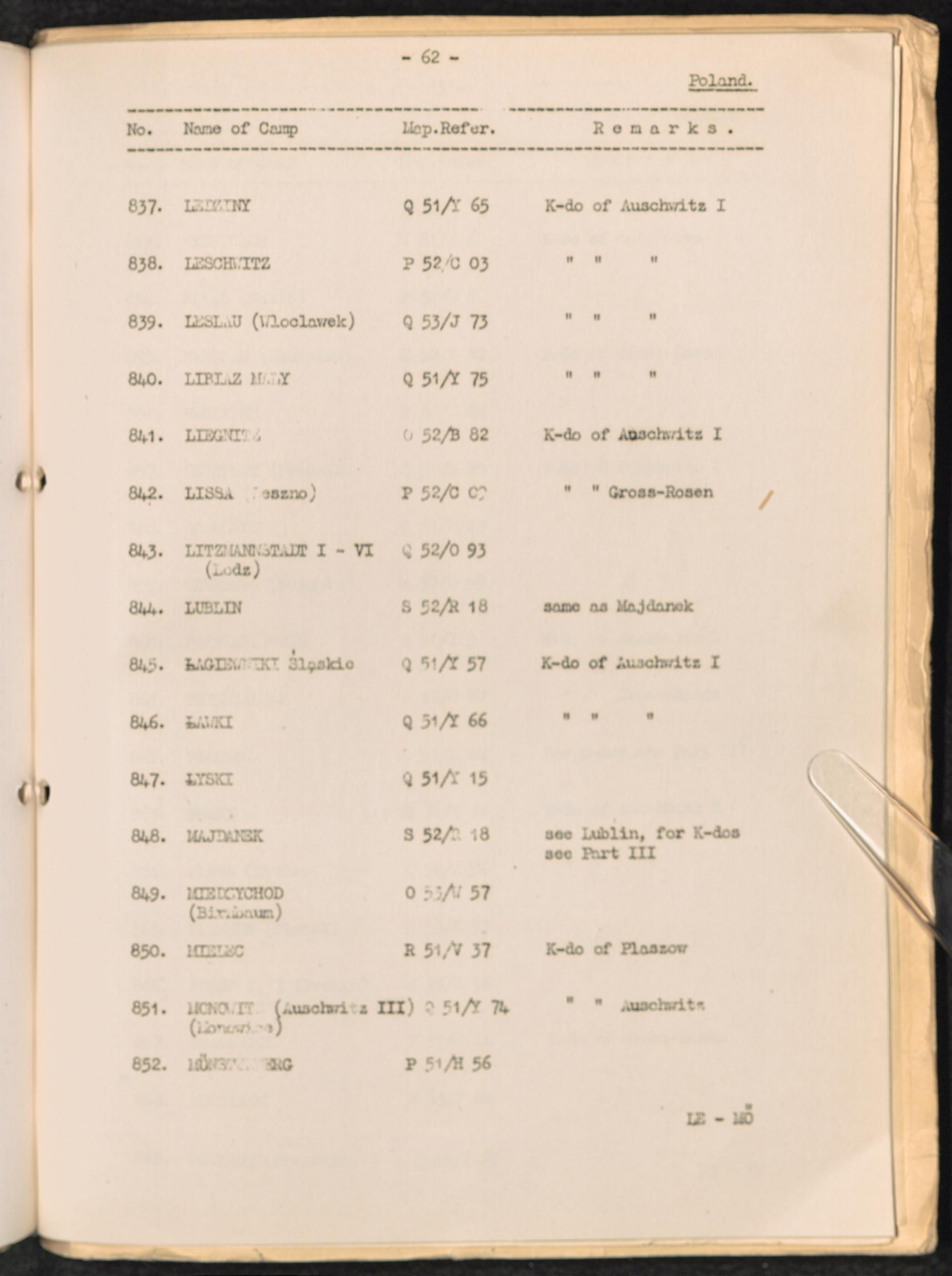 List of Concentration Camps and their Kommandos in Germany and Occupied Countries... Poland