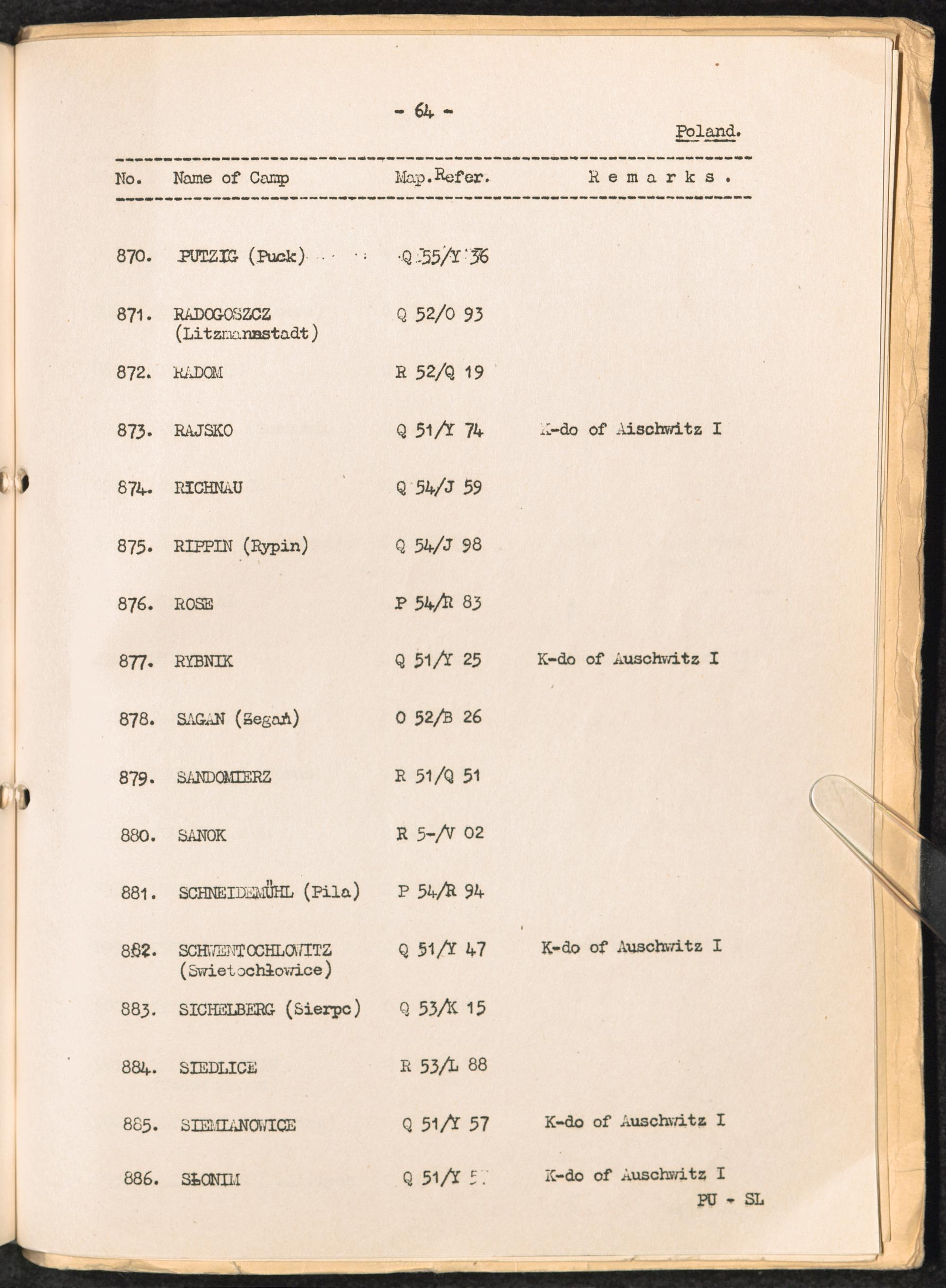 List of Concentration Camps and their Kommandos in Germany and Occupied Countries... Poland