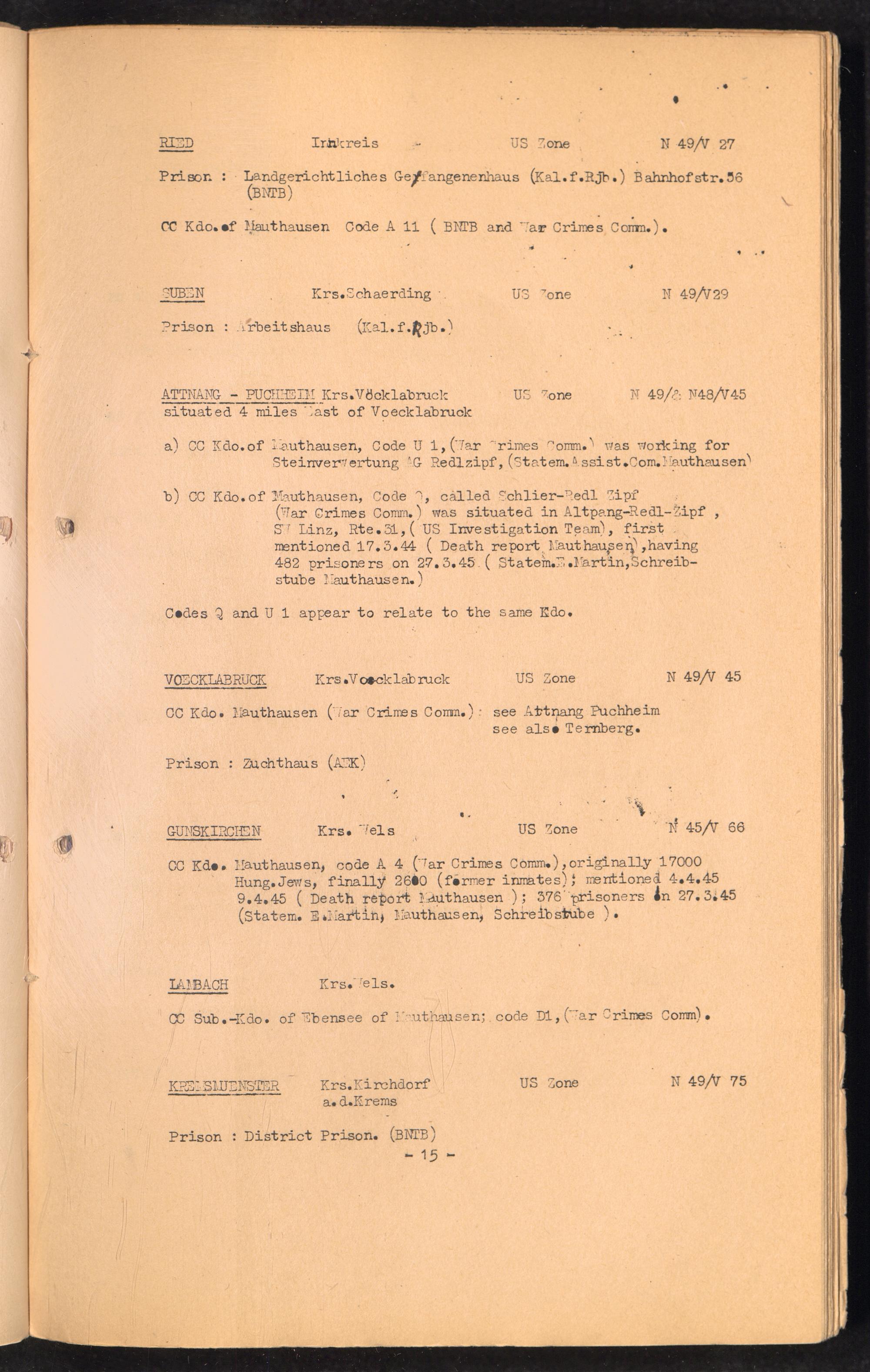 Band 1 (1949) Catalogue of Camps and Prisons in Germany and german-occupied Territories Sept. 1st, 1939 - May 8th, 1945 - I Ist Issue