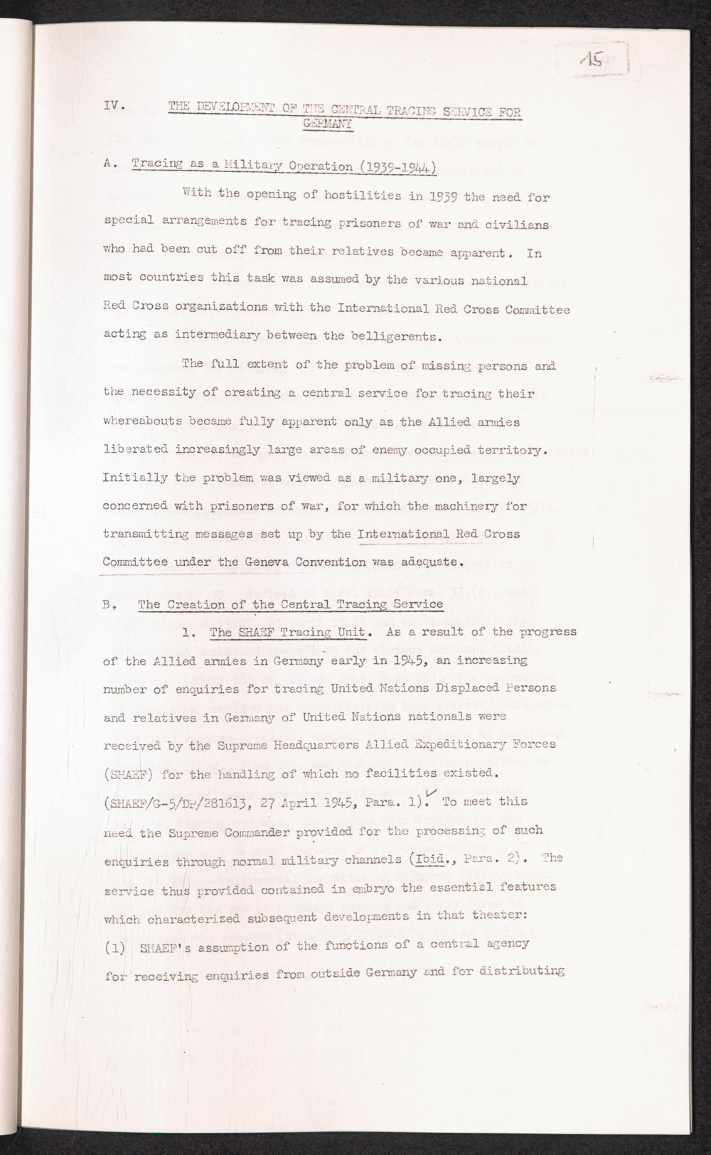 Band 1: The Tracing of Missing Persons in Germany on an International Scale with Particular Reference to the Problem of U.N.R.R.A