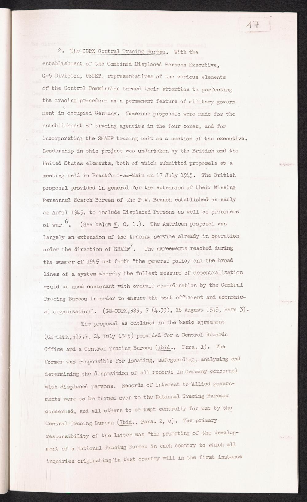 Band 1: The Tracing of Missing Persons in Germany on an International Scale with Particular Reference to the Problem of U.N.R.R.A