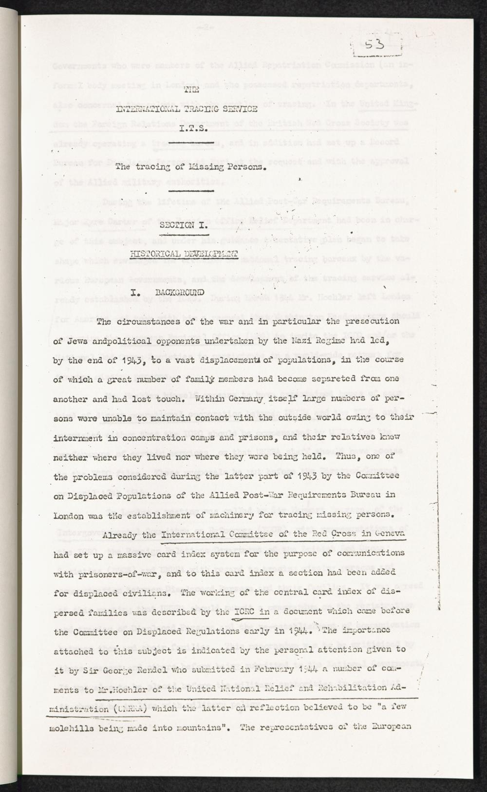Band 2: The History of the International Tracing Service 1945 - 1951 - Section I