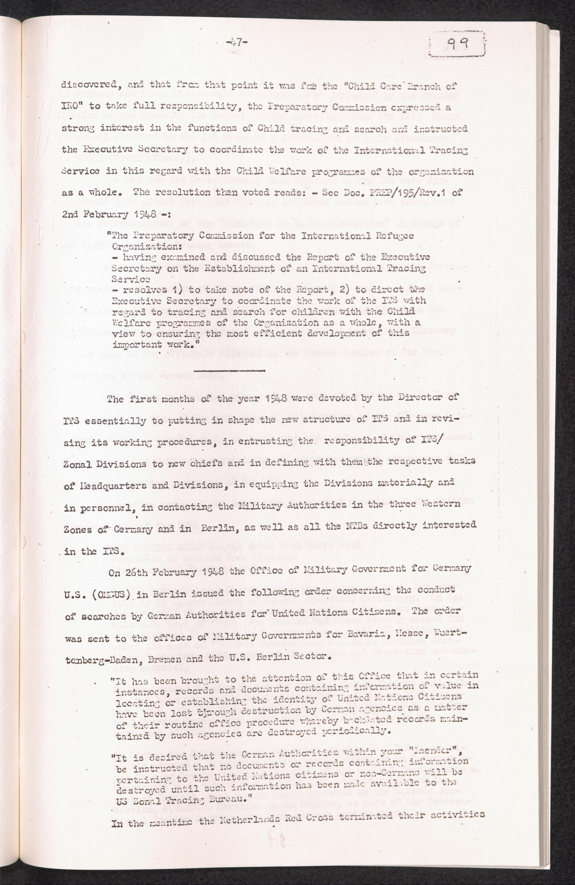 Band 2: The History of the International Tracing Service 1945 - 1951 - Section I