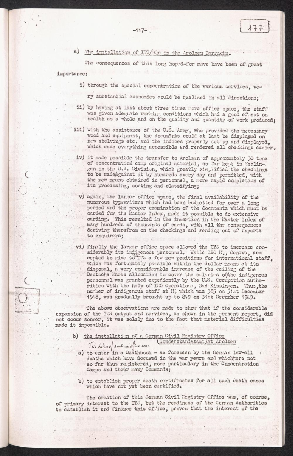 Historical Survey of Central Tracing Activity in Germany 1945 - 1951 Band 3. History of the International Tracing Service 1945 - 1951 - Section II The Years 1948 - 1949 - 1950 1949