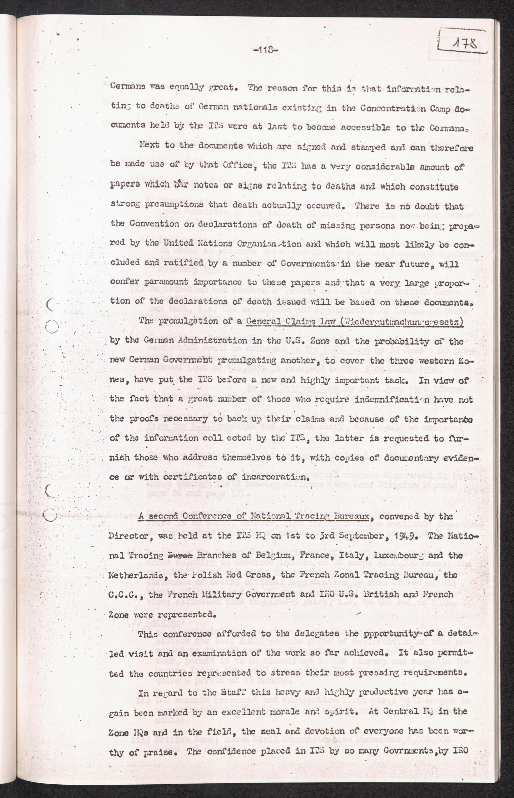 Historical Survey of Central Tracing Activity in Germany 1945 - 1951 Band 3. History of the International Tracing Service 1945 - 1951 - Section II The Years 1948 - 1949 - 1950 1949