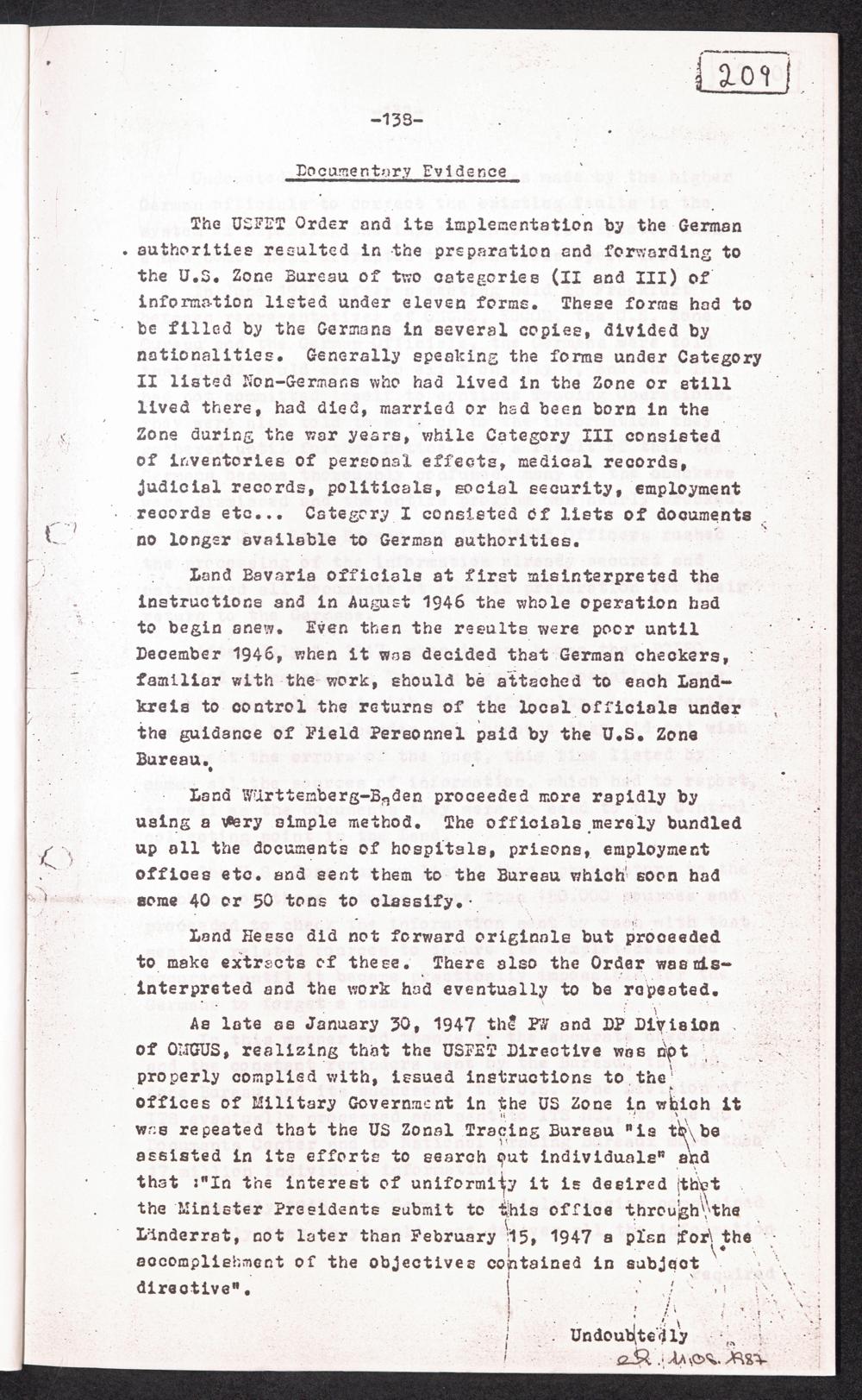 Historical Survey of Central Tracing Activity in Germany 1945 - 1951 Band 4. History of the International Tracing Service 1945 - 1951 - Section II Co... Documentrary Evidence