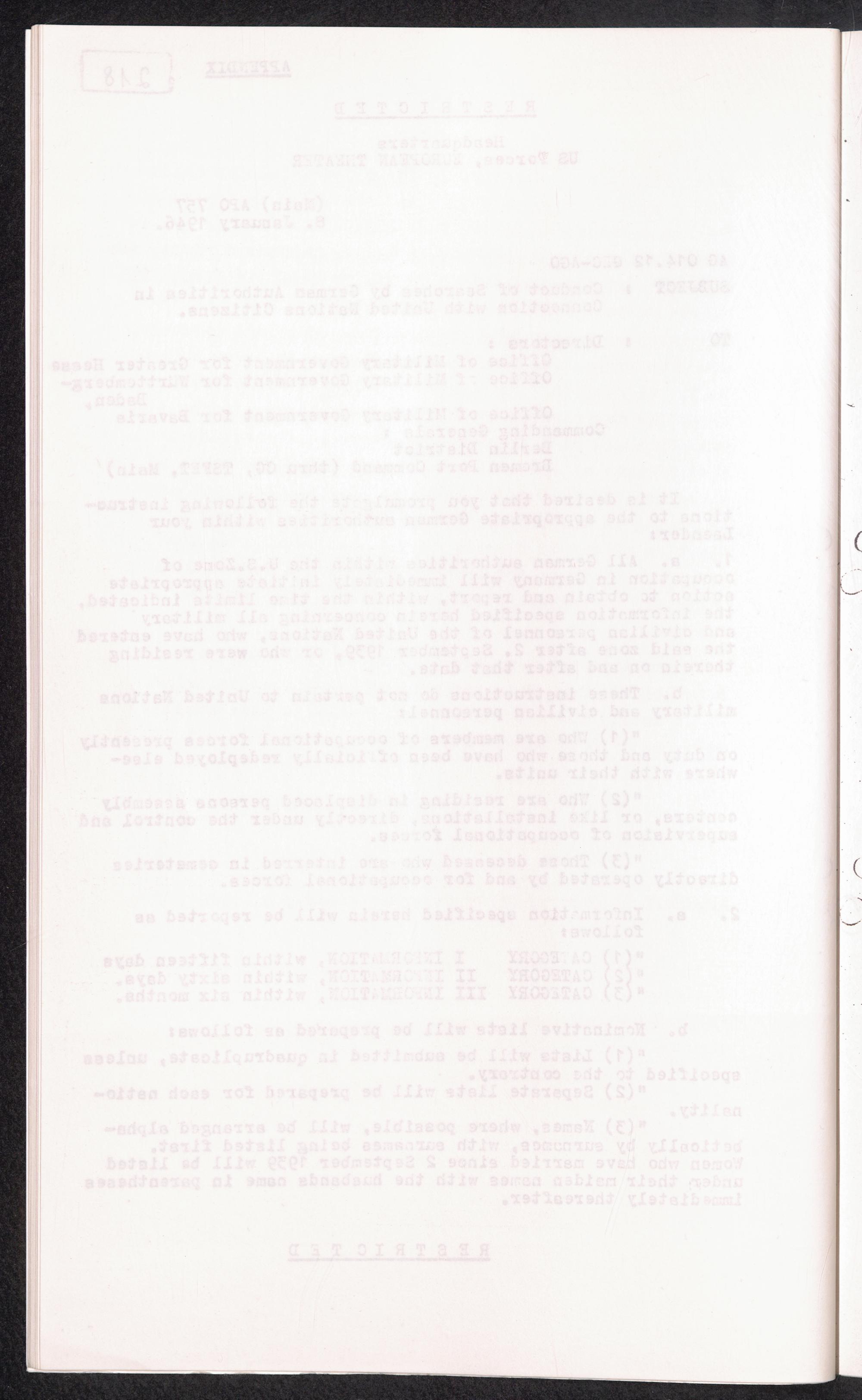Historical Survey of Central Tracing Activity in Germany 1945 - 1951 Band 4. History of the International Tracing Service 1945 - 1951 - Section II Co... Appendix - Restricted