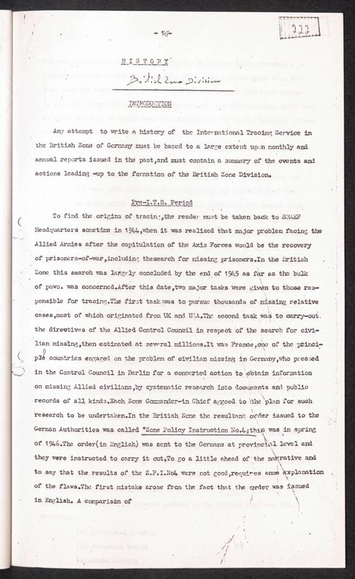Historical Survey of Central Tracing Activity in Germany 1945 - 1951 Band 4. History of the International Tracing Service 1945 - 1951 - Section II Co... History Britisch Zone Division