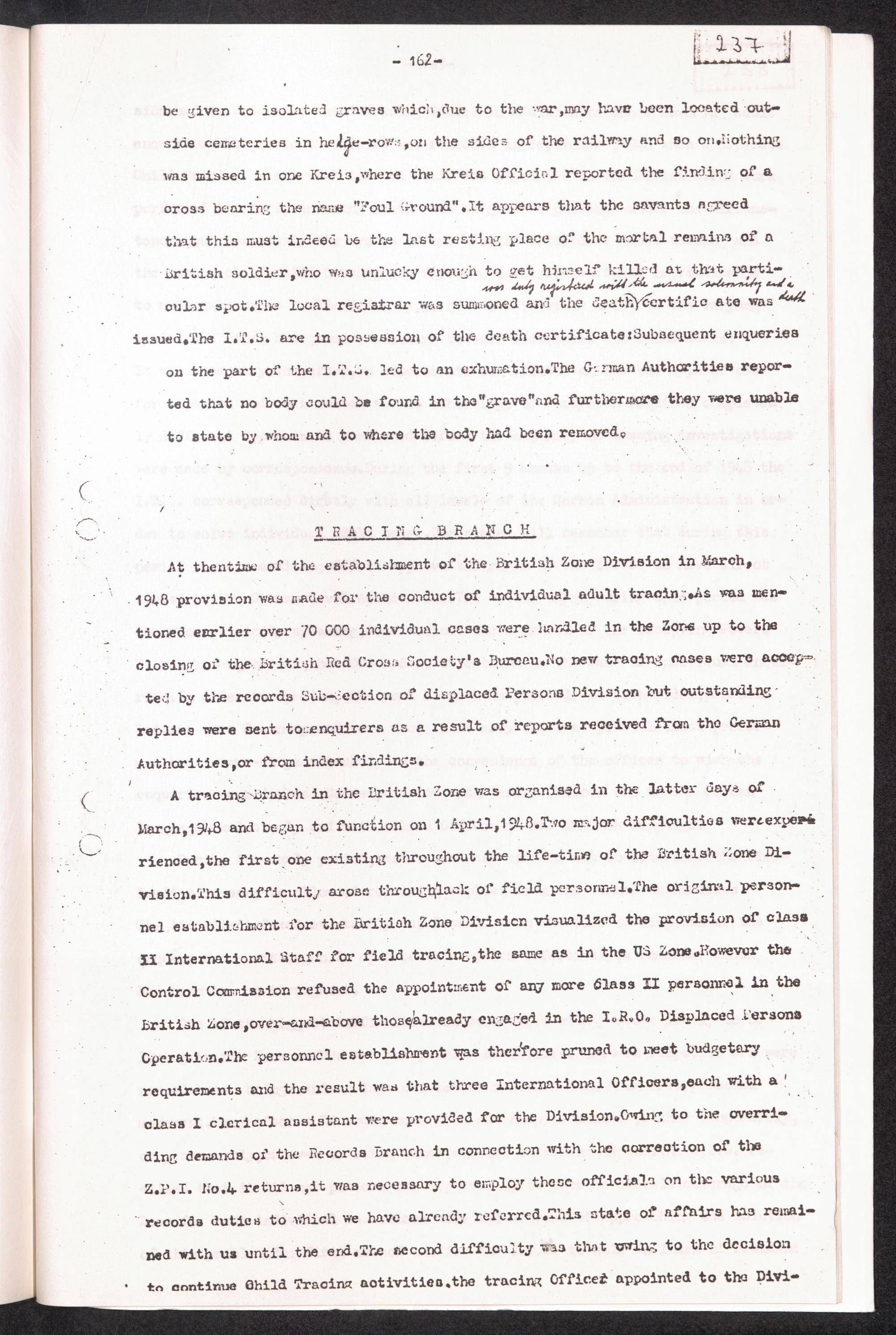 Historical Survey of Central Tracing Activity in Germany 1945 - 1951 Band 4. History of the International Tracing Service 1945 - 1951 - Section II Co... History Britisch Zone Division