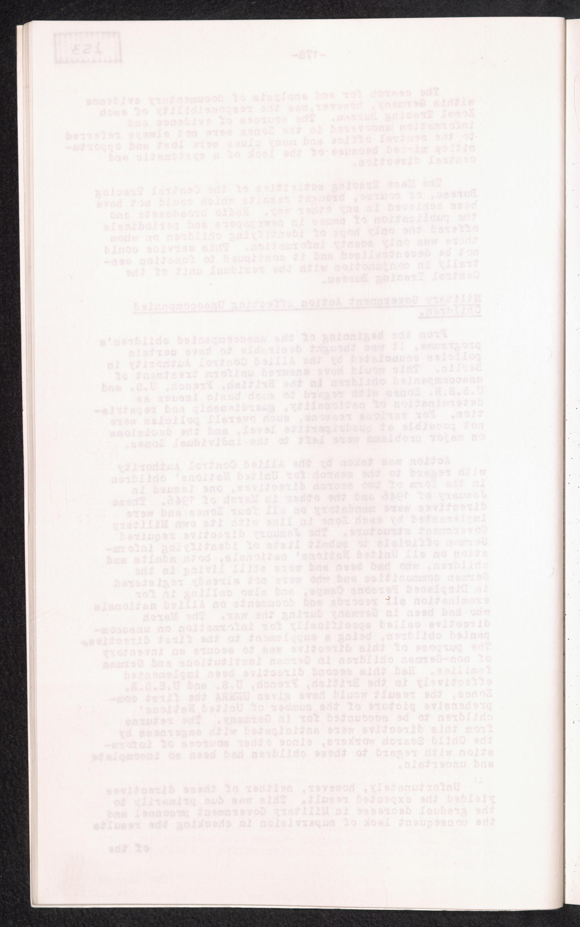 Historical Survey of Central Tracing Activity in Germany 1945 - 1951 Band 5. History of the Search for Unaccompanied Children History of the Search for unaccompanied Children Child Search Activities of UNRRA