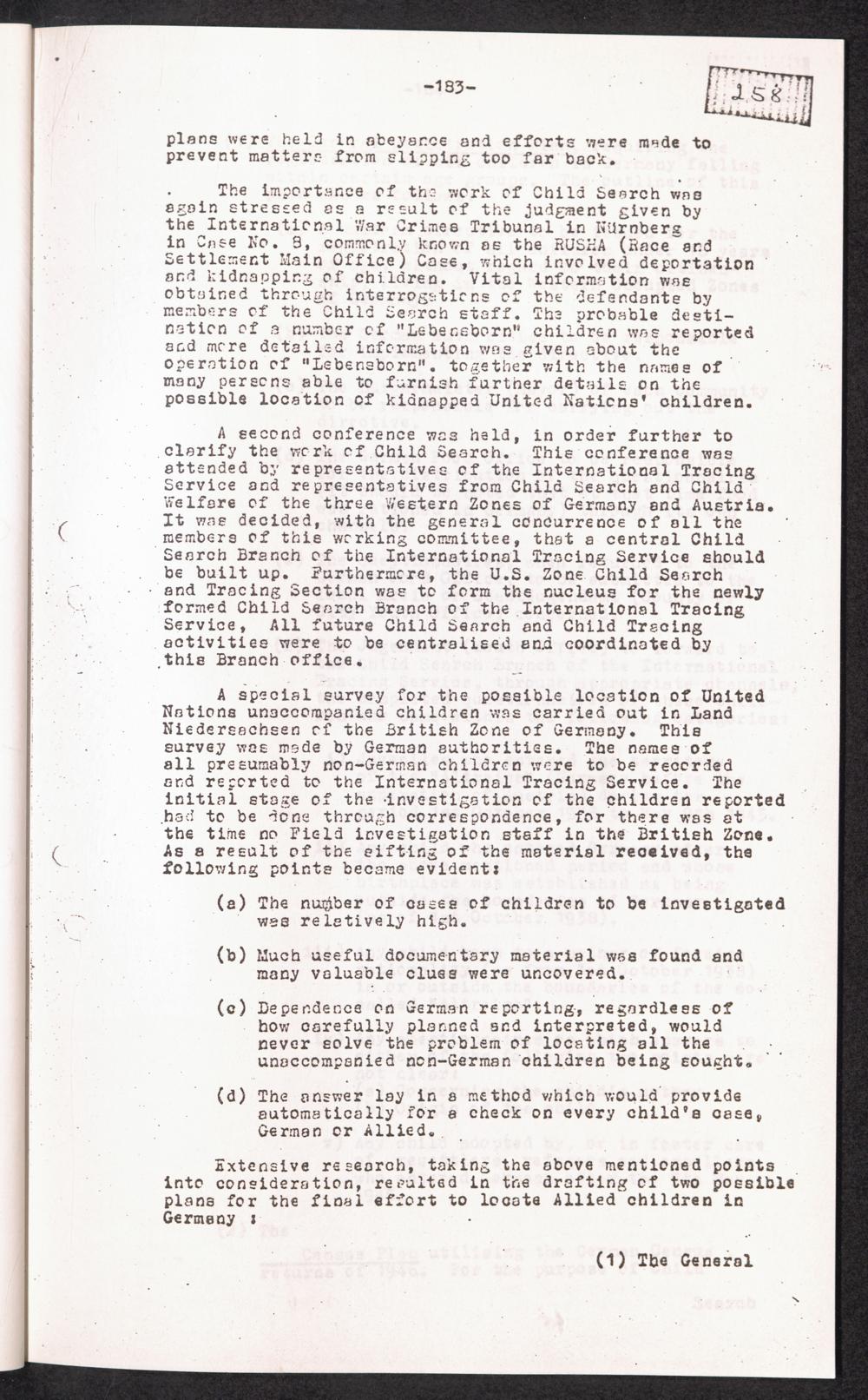 Historical Survey of Central Tracing Activity in Germany 1945 - 1951 Band 5. History of the Search for Unaccompanied Children History of the Search for unaccompanied Children Child Search Activities of the I.R.O.
