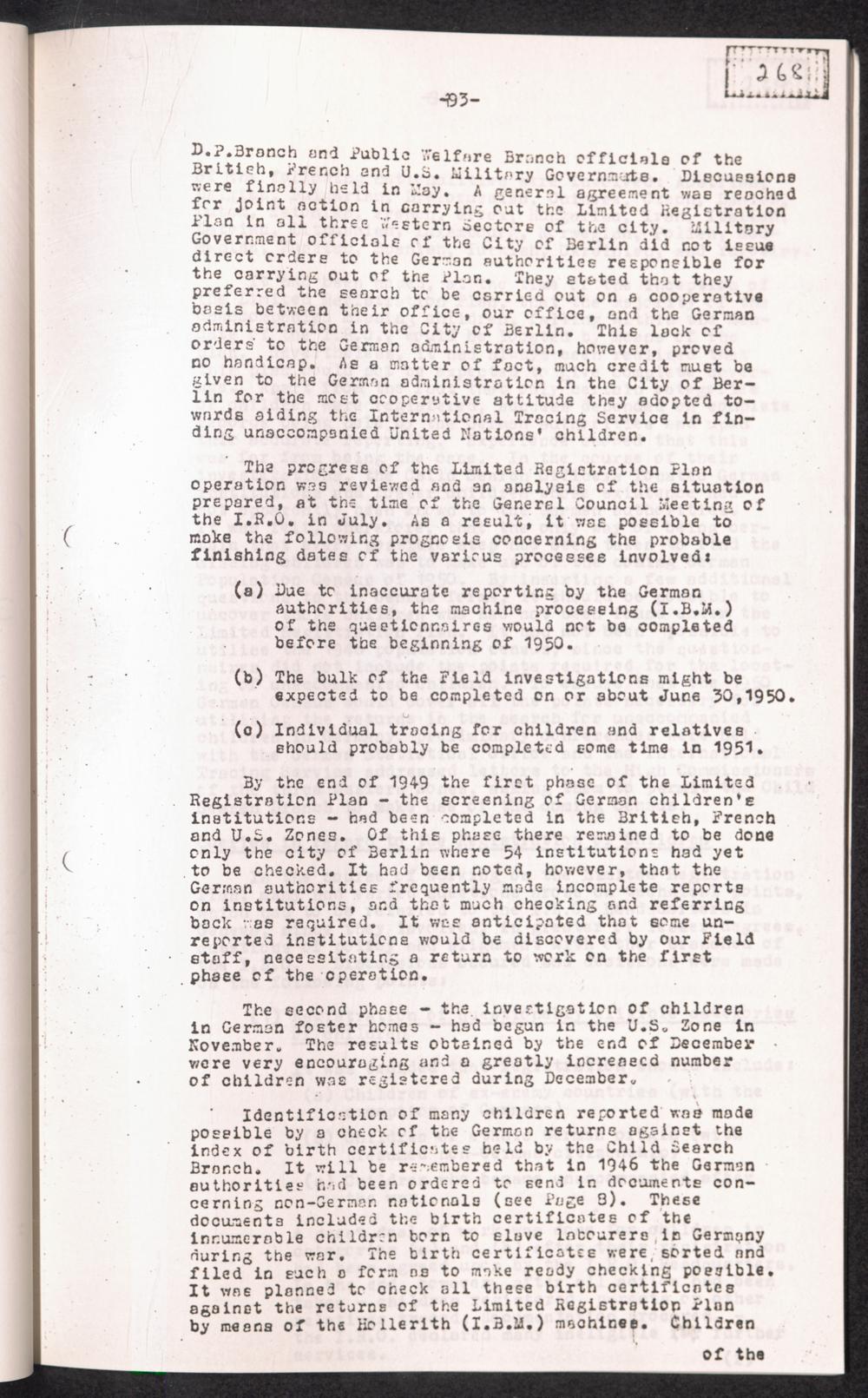Historical Survey of Central Tracing Activity in Germany 1945 - 1951 Band 5. History of the Search for Unaccompanied Children History of the Search for unaccompanied Children Child Search Activities of the I.R.O.