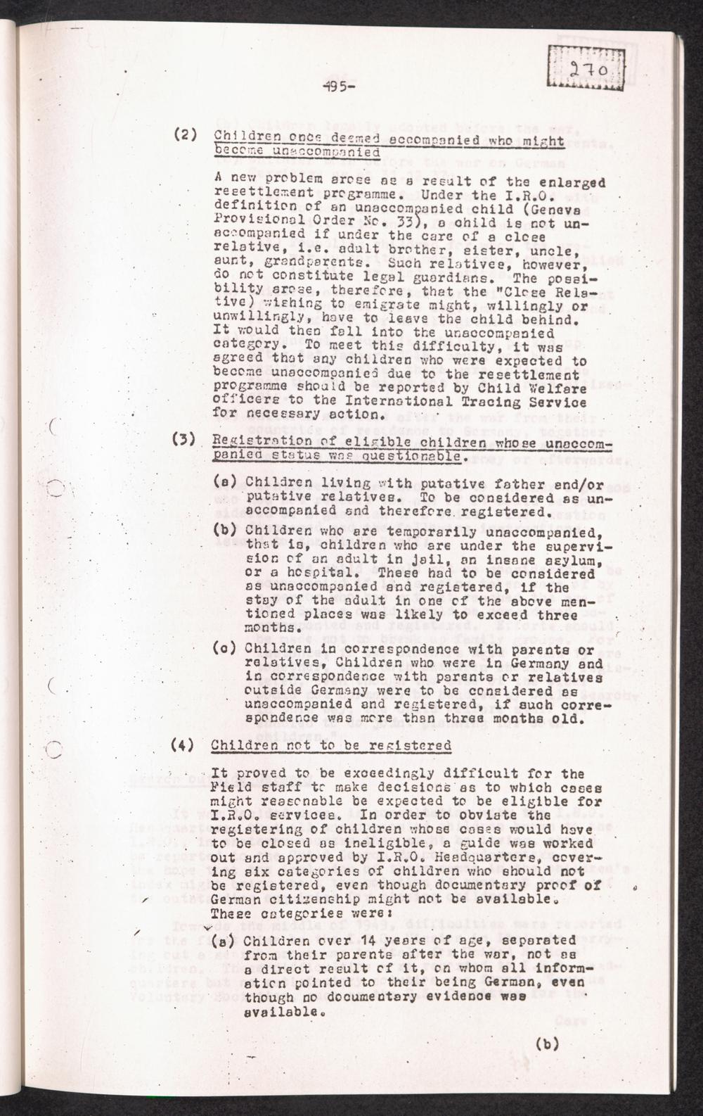 Historical Survey of Central Tracing Activity in Germany 1945 - 1951 Band 5. History of the Search for Unaccompanied Children History of the Search for unaccompanied Children Child Search Activities of the I.R.O.