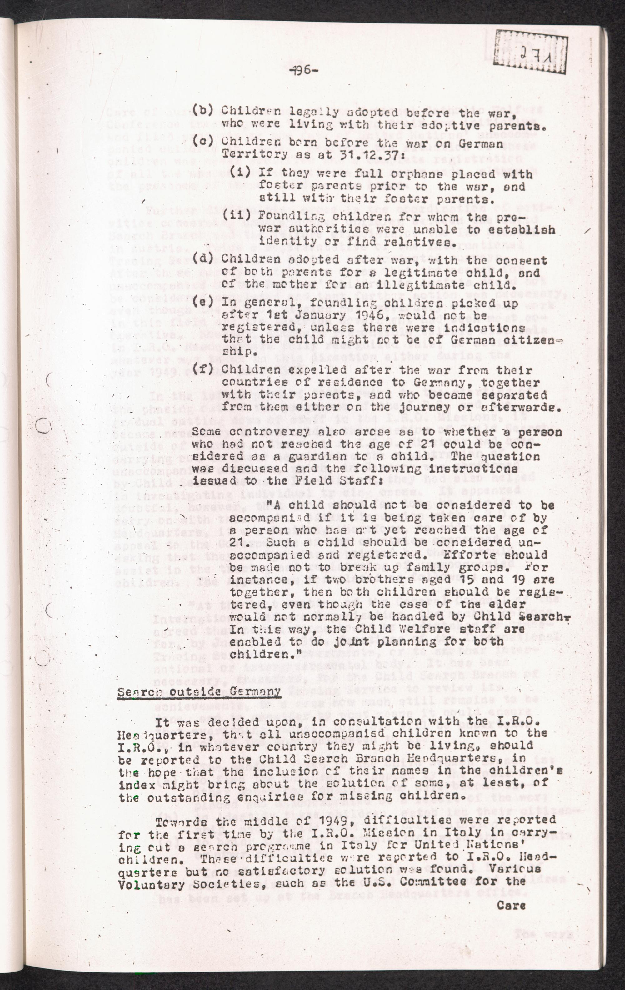 Historical Survey of Central Tracing Activity in Germany 1945 - 1951 Band 5. History of the Search for Unaccompanied Children History of the Search for unaccompanied Children Child Search Activities of the I.R.O.