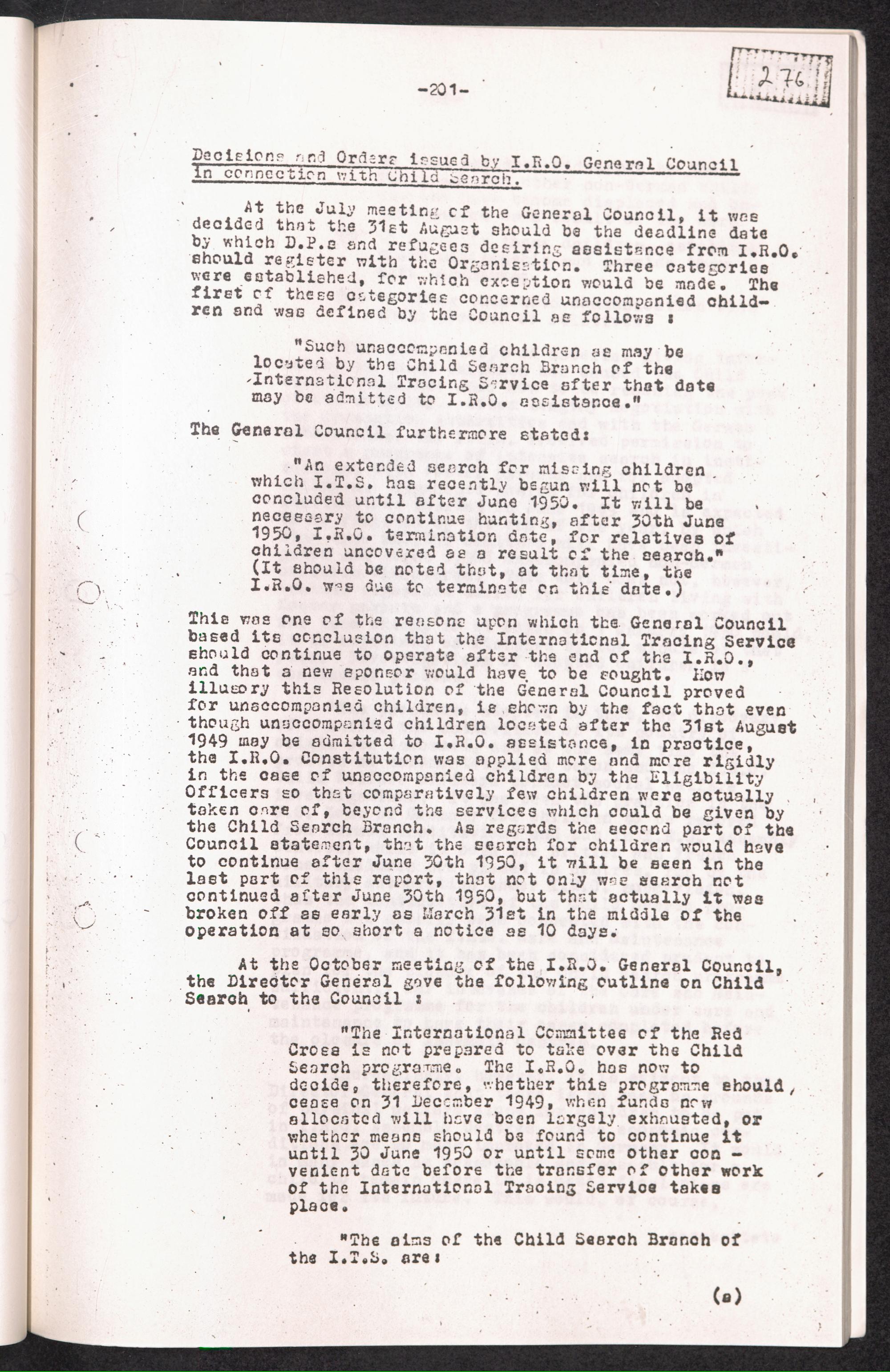 Historical Survey of Central Tracing Activity in Germany 1945 - 1951 Band 5. History of the Search for Unaccompanied Children History of the Search for unaccompanied Children Child Search Activities of the I.R.O.
