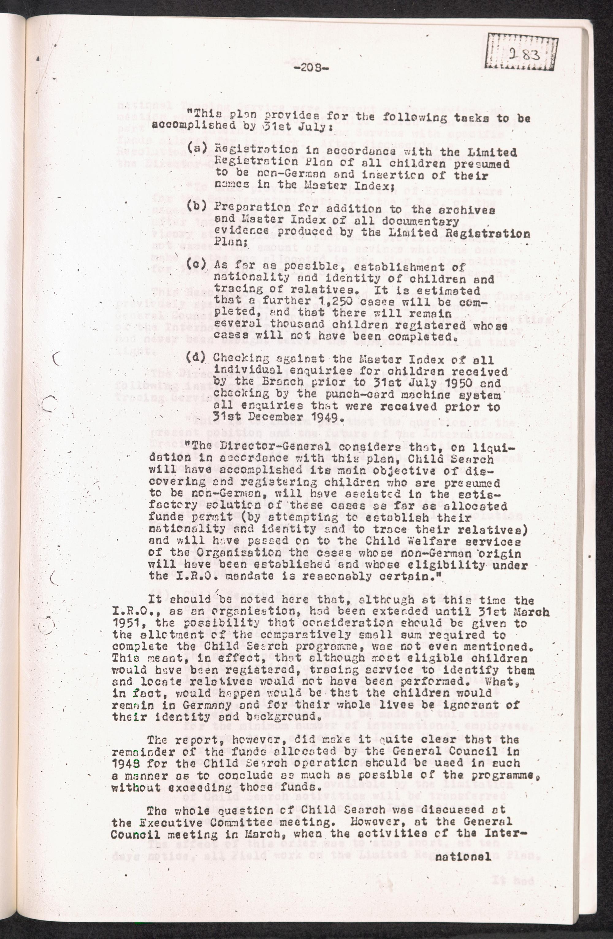 Historical Survey of Central Tracing Activity in Germany 1945 - 1951 Band 5. History of the Search for Unaccompanied Children History of the Search for unaccompanied Children Child Search Activities of the I.R.O.