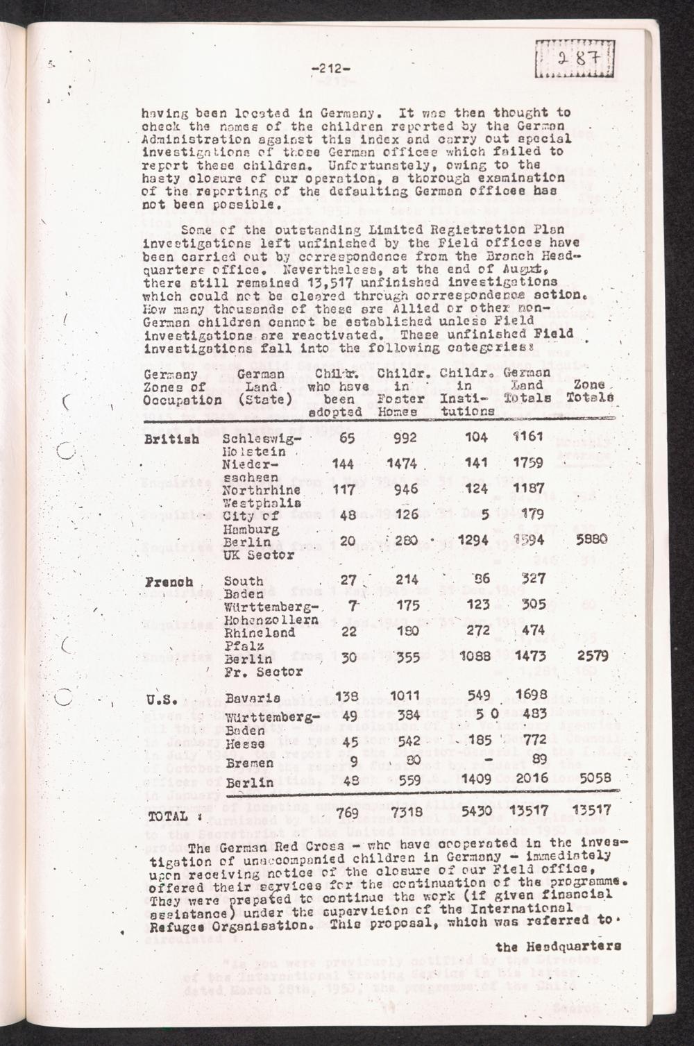 Historical Survey of Central Tracing Activity in Germany 1945 - 1951 Band 5. History of the Search for Unaccompanied Children History of the Search for unaccompanied Children Child Search Activities of the I.R.O.