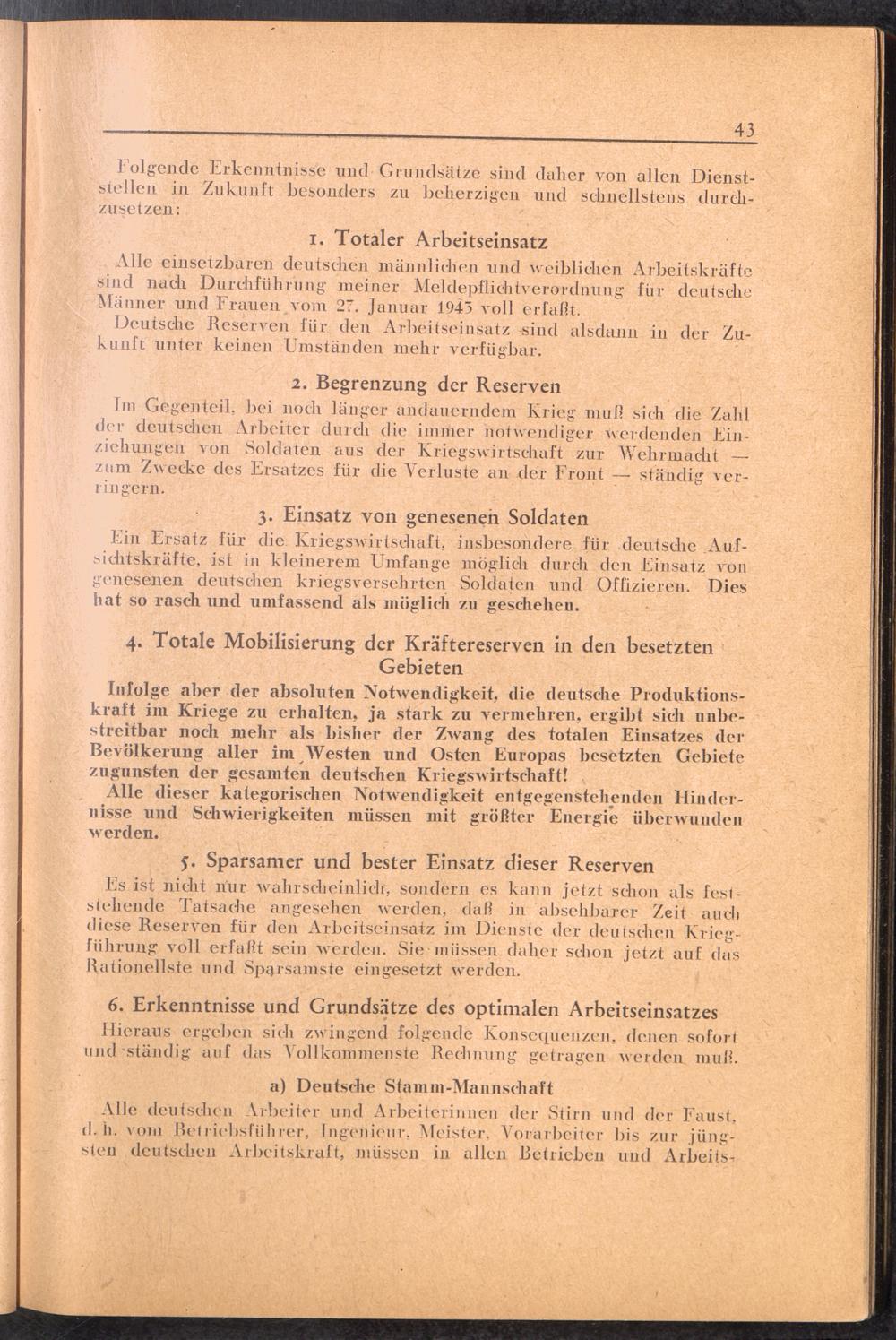 Handbuch für die Dienststellen des Generalbevollmächtigten für den Arbeitseinsatz und die interessierten Reichsstellen im Großdeutschen Reich und in den besetzten Gebieten : 1: Vollmachten - Verlautbarungen - Verordnungen - Organisation des GBA