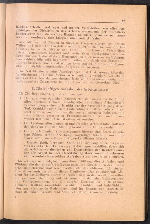 Handbuch für die Dienststellen des Generalbevollmächtigten für den Arbeitseinsatz und die interessierten Reichsstellen im Großdeutschen Reich und in den besetzten Gebieten : 1: Vollmachten - Verlautbarungen - Verordnungen - Organisation des GBA