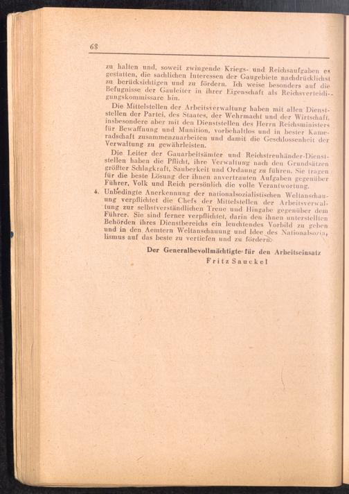 Handbuch für die Dienststellen des Generalbevollmächtigten für den Arbeitseinsatz und die interessierten Reichsstellen im Großdeutschen Reich und in den besetzten Gebieten : 1: Vollmachten - Verlautbarungen - Verordnungen - Organisation des GBA