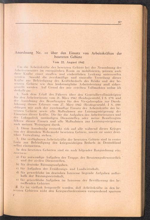 Handbuch für die Dienststellen des Generalbevollmächtigten für den Arbeitseinsatz und die interessierten Reichsstellen im Großdeutschen Reich und in den besetzten Gebieten : 1: Vollmachten - Verlautbarungen - Verordnungen - Organisation des GBA