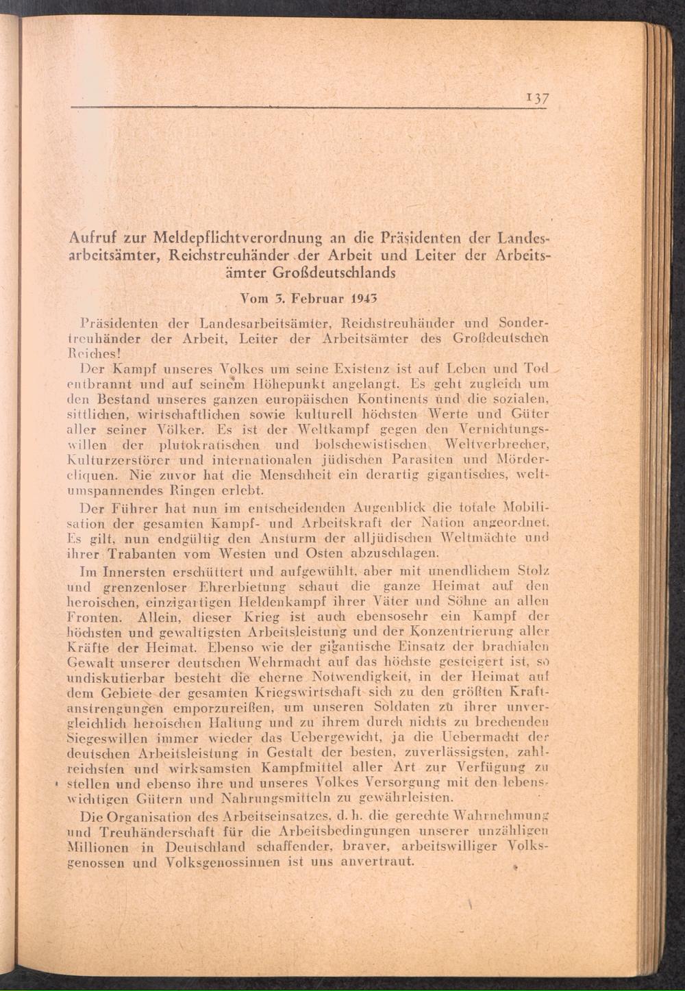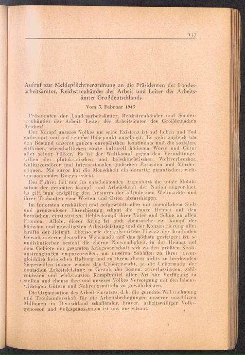 Handbuch für die Dienststellen des Generalbevollmächtigten für den Arbeitseinsatz und die interessierten Reichsstellen im Großdeutschen Reich und in den besetzten Gebieten : 1: Vollmachten - Verlautbarungen - Verordnungen - Organisation des GBA