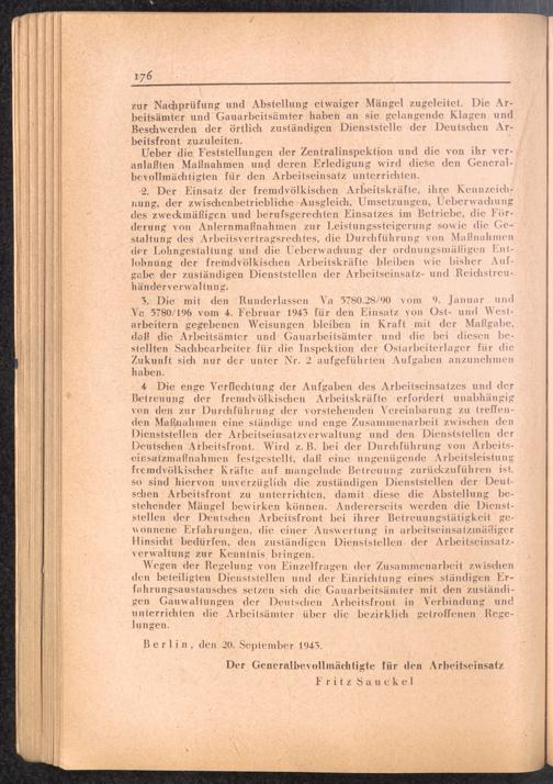 Handbuch für die Dienststellen des Generalbevollmächtigten für den Arbeitseinsatz und die interessierten Reichsstellen im Großdeutschen Reich und in den besetzten Gebieten : 1: Vollmachten - Verlautbarungen - Verordnungen - Organisation des GBA