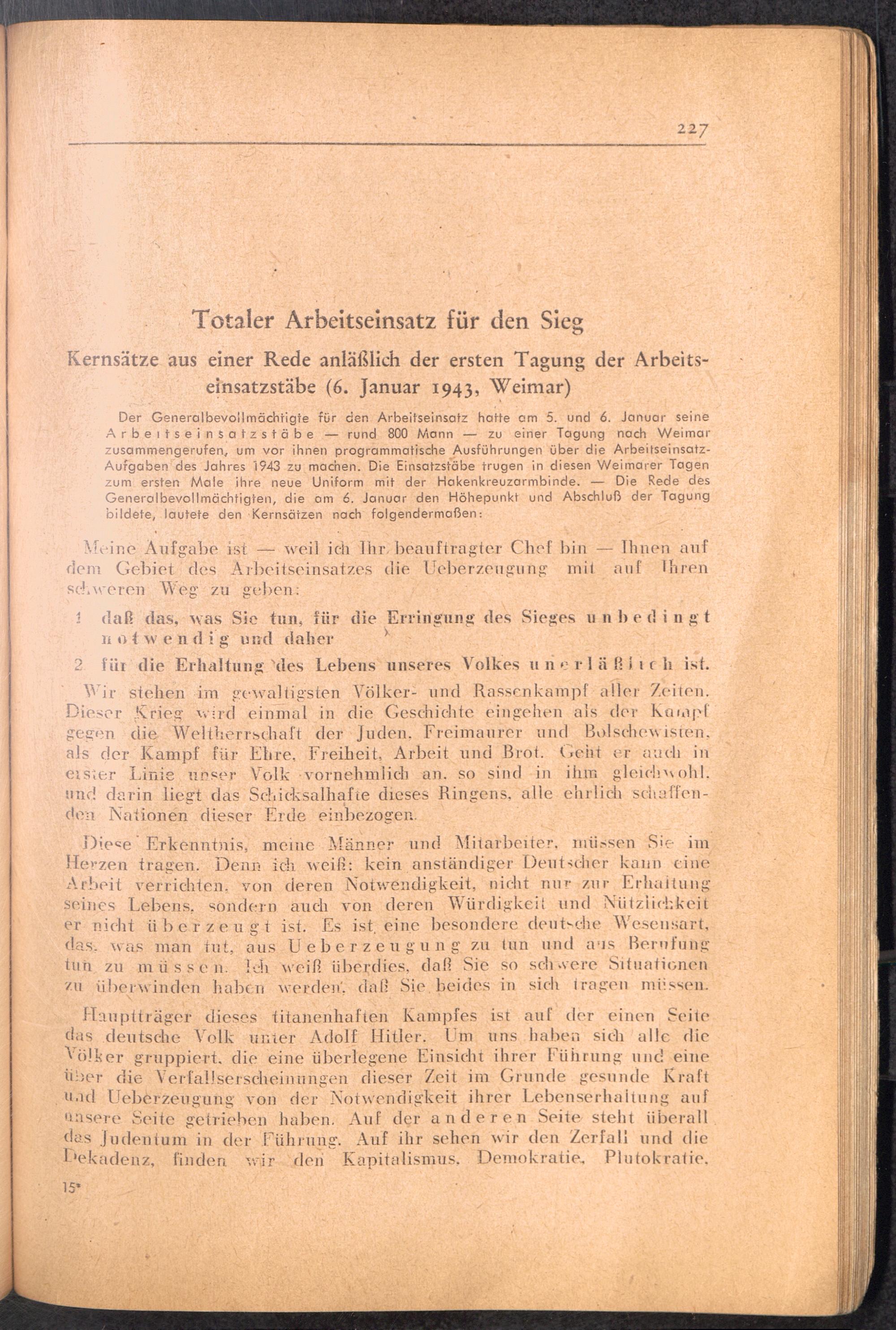 Handbuch für die Dienststellen des Generalbevollmächtigten für den Arbeitseinsatz und die interessierten Reichsstellen im Großdeutschen Reich und in den besetzten Gebieten : 1: Vollmachten - Verlautbarungen - Verordnungen - Organisation des GBA