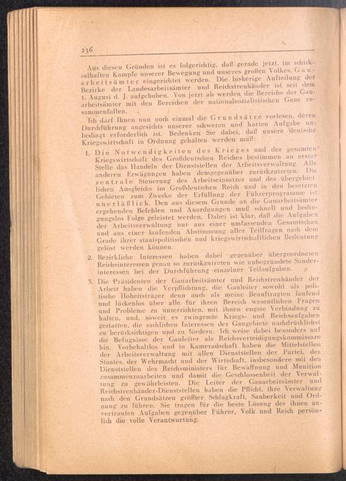 Handbuch für die Dienststellen des Generalbevollmächtigten für den Arbeitseinsatz und die interessierten Reichsstellen im Großdeutschen Reich und in den besetzten Gebieten : 1: Vollmachten - Verlautbarungen - Verordnungen - Organisation des GBA