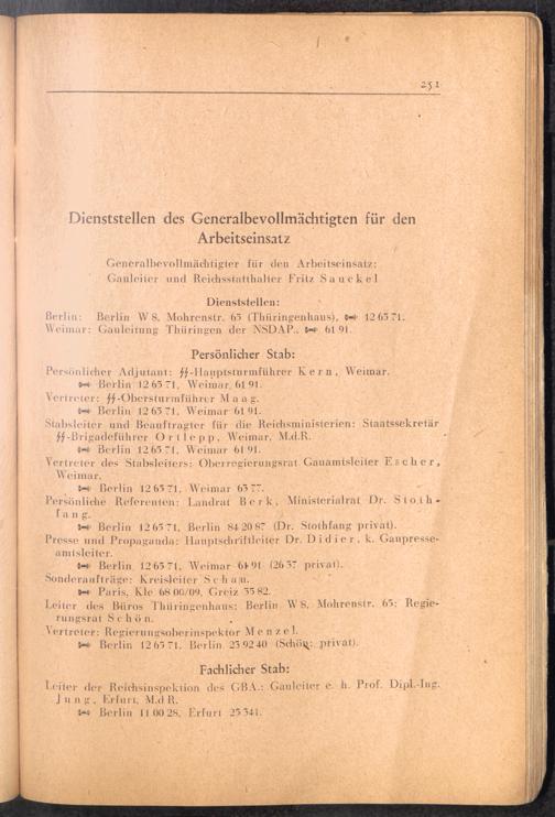 Handbuch für die Dienststellen des Generalbevollmächtigten für den Arbeitseinsatz und die interessierten Reichsstellen im Großdeutschen Reich und in den besetzten Gebieten : 1: Vollmachten - Verlautbarungen - Verordnungen - Organisation des GBA