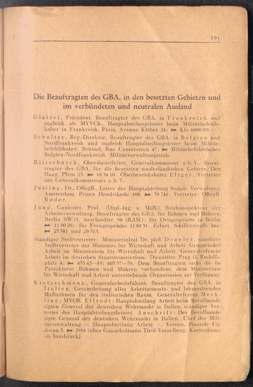 Handbuch für die Dienststellen des Generalbevollmächtigten für den Arbeitseinsatz und die interessierten Reichsstellen im Großdeutschen Reich und in den besetzten Gebieten : 1: Vollmachten - Verlautbarungen - Verordnungen - Organisation des GBA