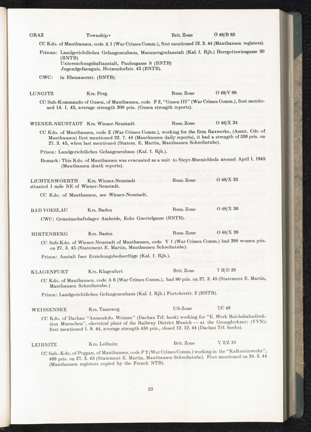Catalogue of Camps and Prisons in Germany and german-occupied Territories Sept. 1st, 1939 - May 8th, 1945 : Ist Issue