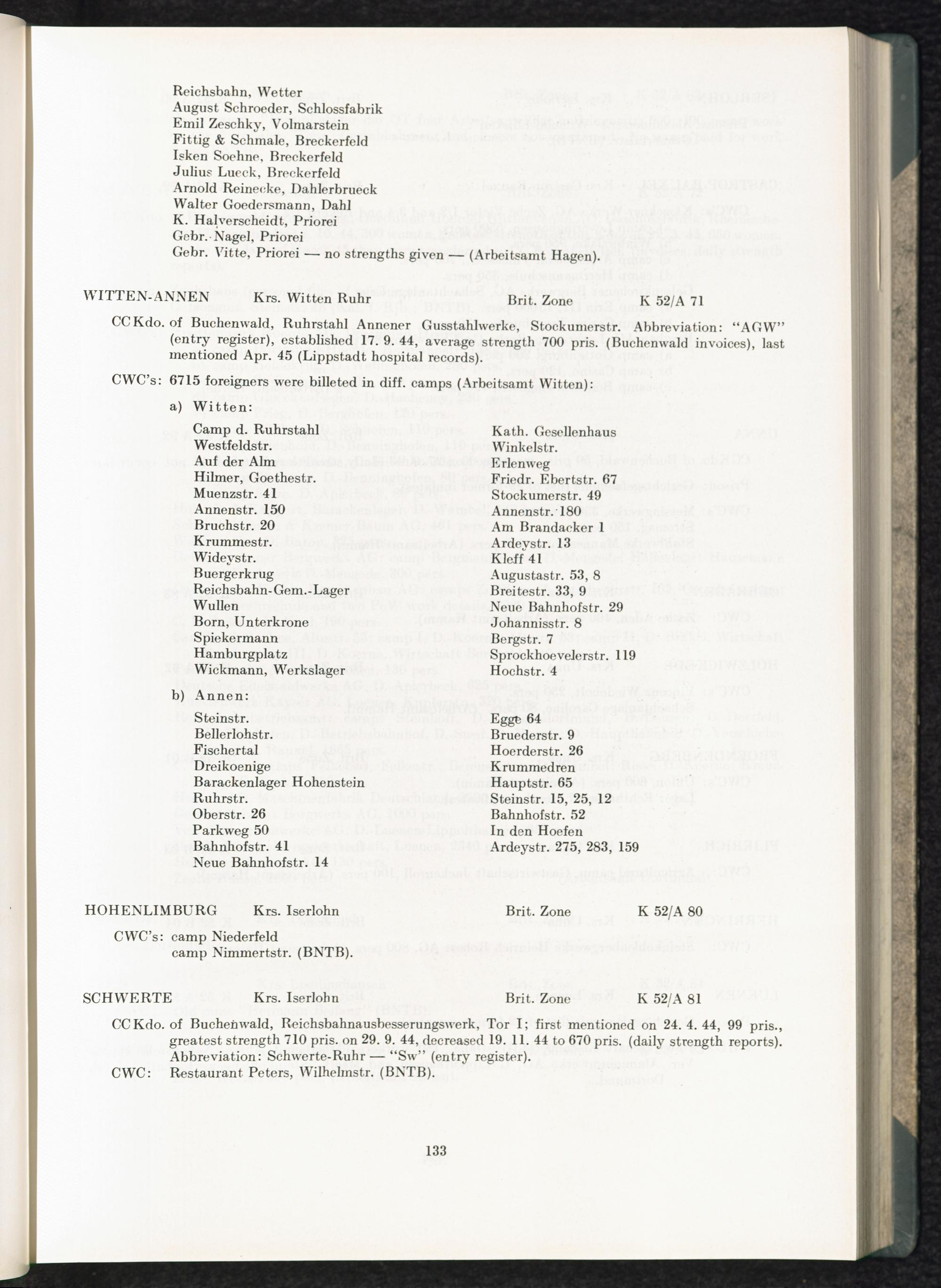 Catalogue of Camps and Prisons in Germany and german-occupied Territories Sept. 1st, 1939 - May 8th, 1945 : Ist Issue