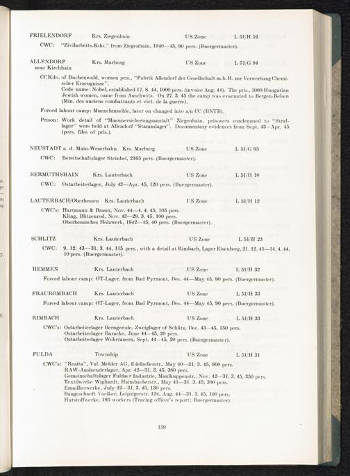 Catalogue of Camps and Prisons in Germany and german-occupied Territories Sept. 1st, 1939 - May 8th, 1945 : Ist Issue
