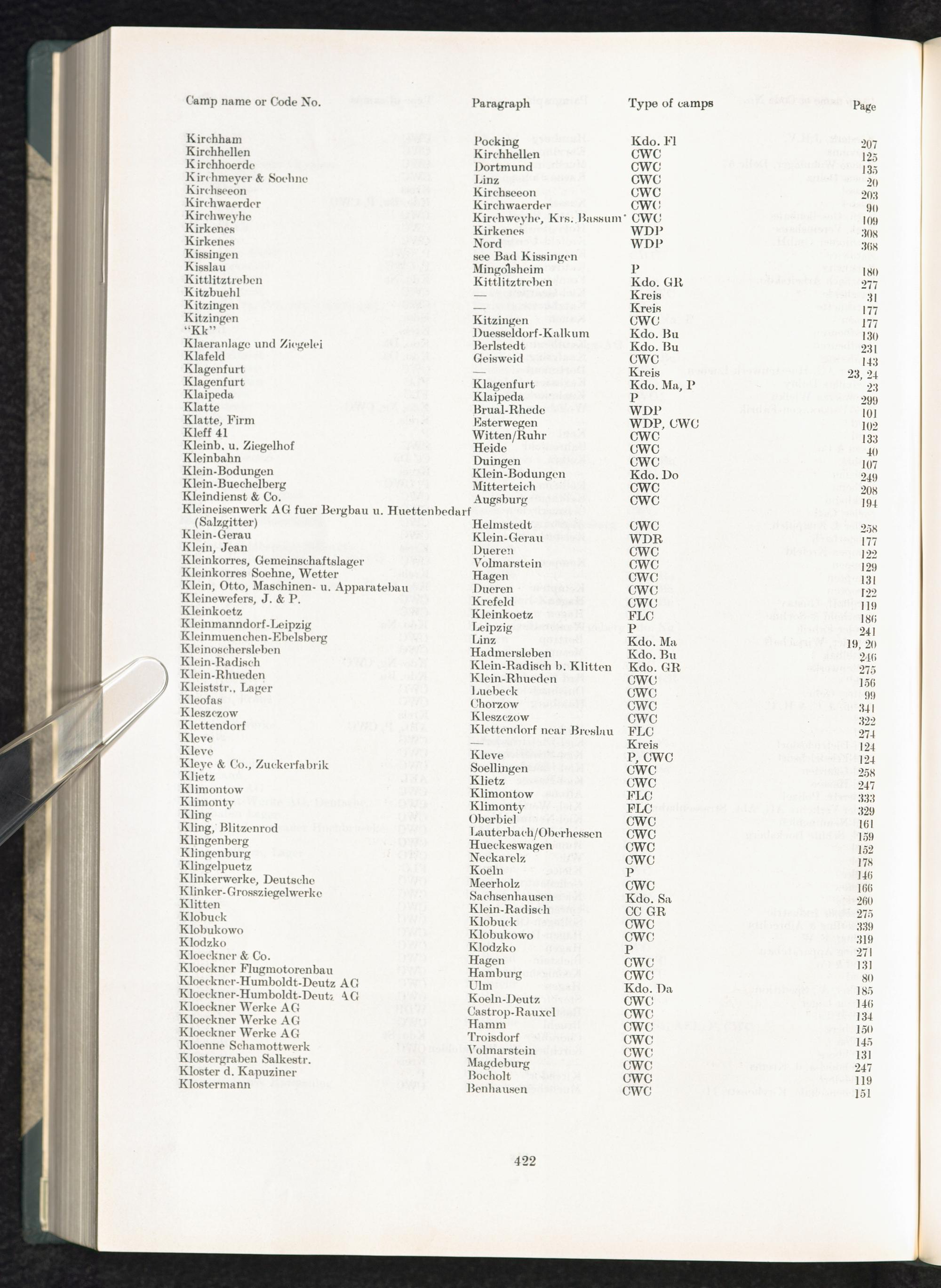 Catalogue of Camps and Prisons in Germany and german-occupied Territories Sept. 1st, 1939 - May 8th, 1945 : Ist Issue