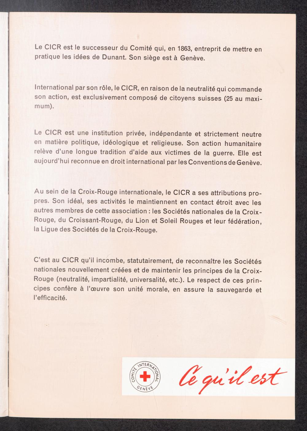 Le C.I.C.R. (Le Comité International de la Croix-Rouge, CICR, ce qu'il est, ce qu'il fait) / Comité International de la Croix-Rouge (CICR)
