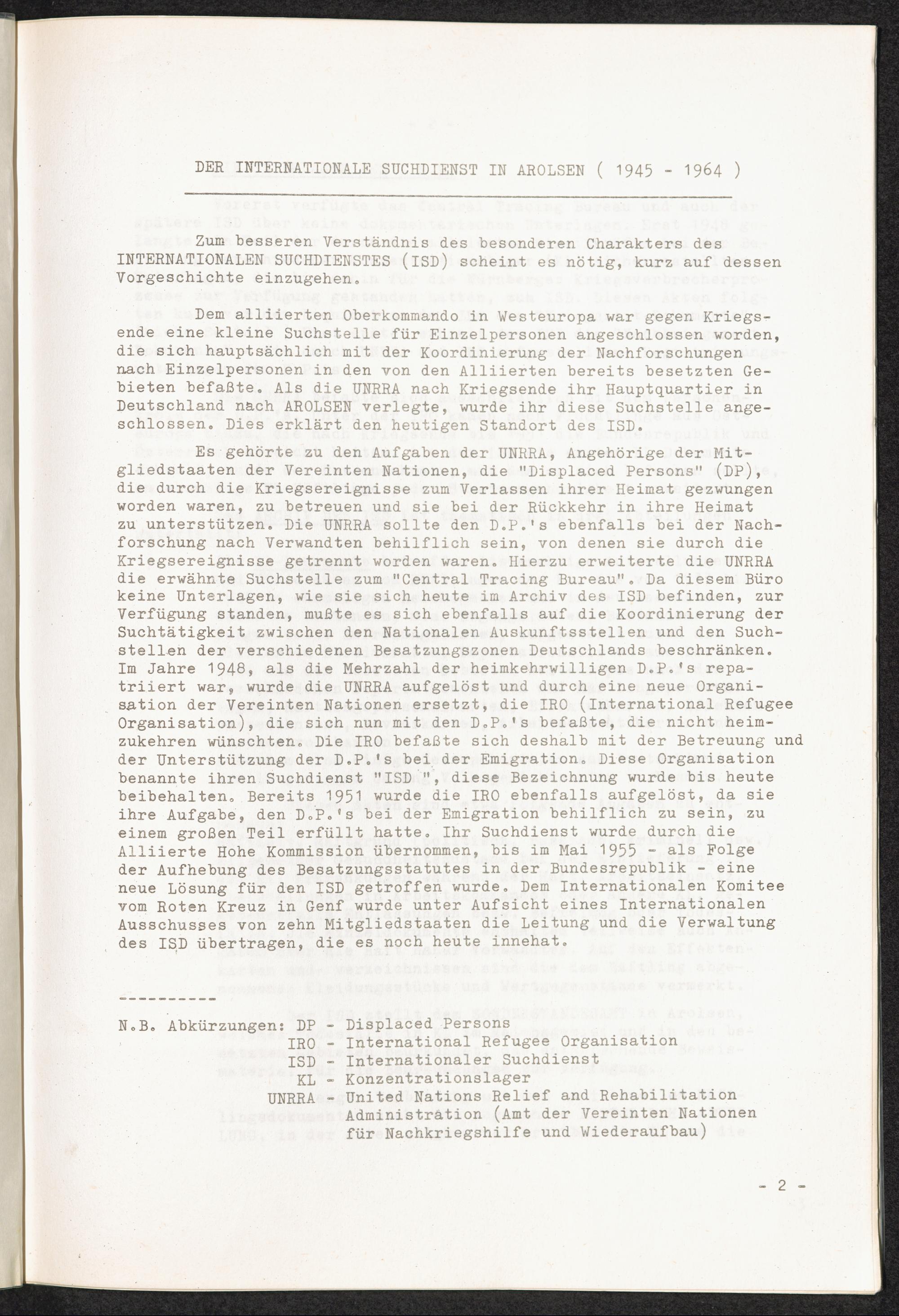 Der Internationale Suchdienst in Arolsen (1945 - 1964) Der Internationale Suchdienst in Arolsen (1945 - 1964)