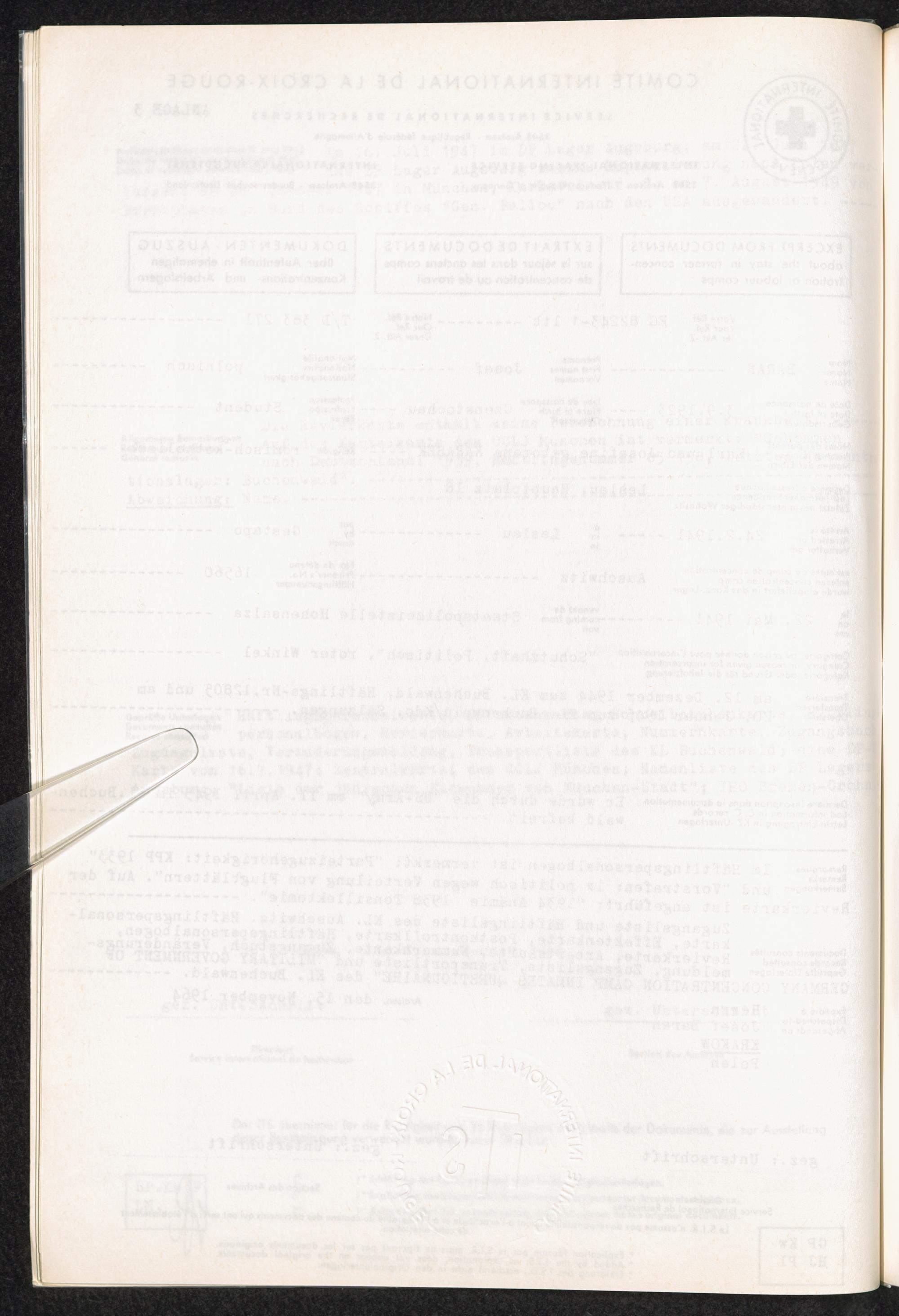 Der Internationale Suchdienst in Arolsen (1945 - 1964) Anlage 3: Dokumenten-Auszug