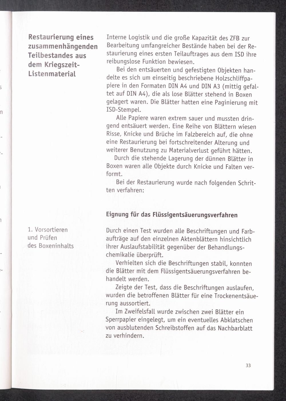 PDF 33 Restaurierung eines zusammenhängenden Teilbestandes aus dem Kriegszeit-Listenmaterial