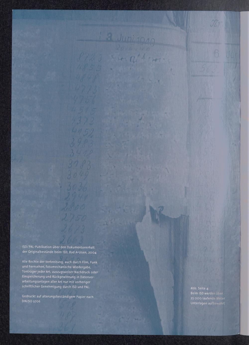 Konservierung und Restaurierung der Originaldokumente des Internationalen Suchdienstes : Entsäuerung im Rahmen des Mandates Aufbewahren nach dem CSC Book Saver®-Verfahren - angewandt von der PAL