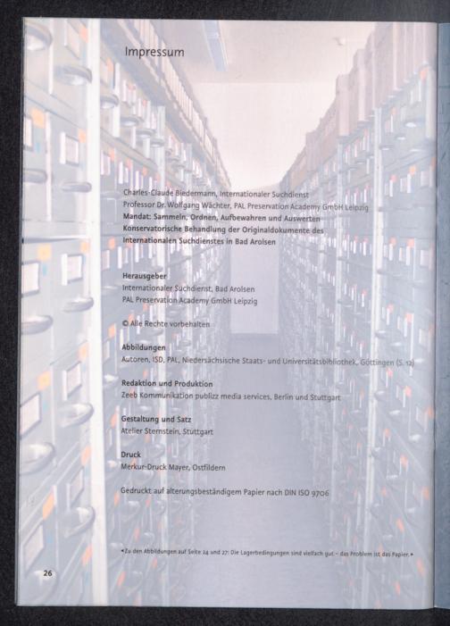 Konservierung und Restaurierung der Originaldokumente des Internationalen Suchdi... Impressum