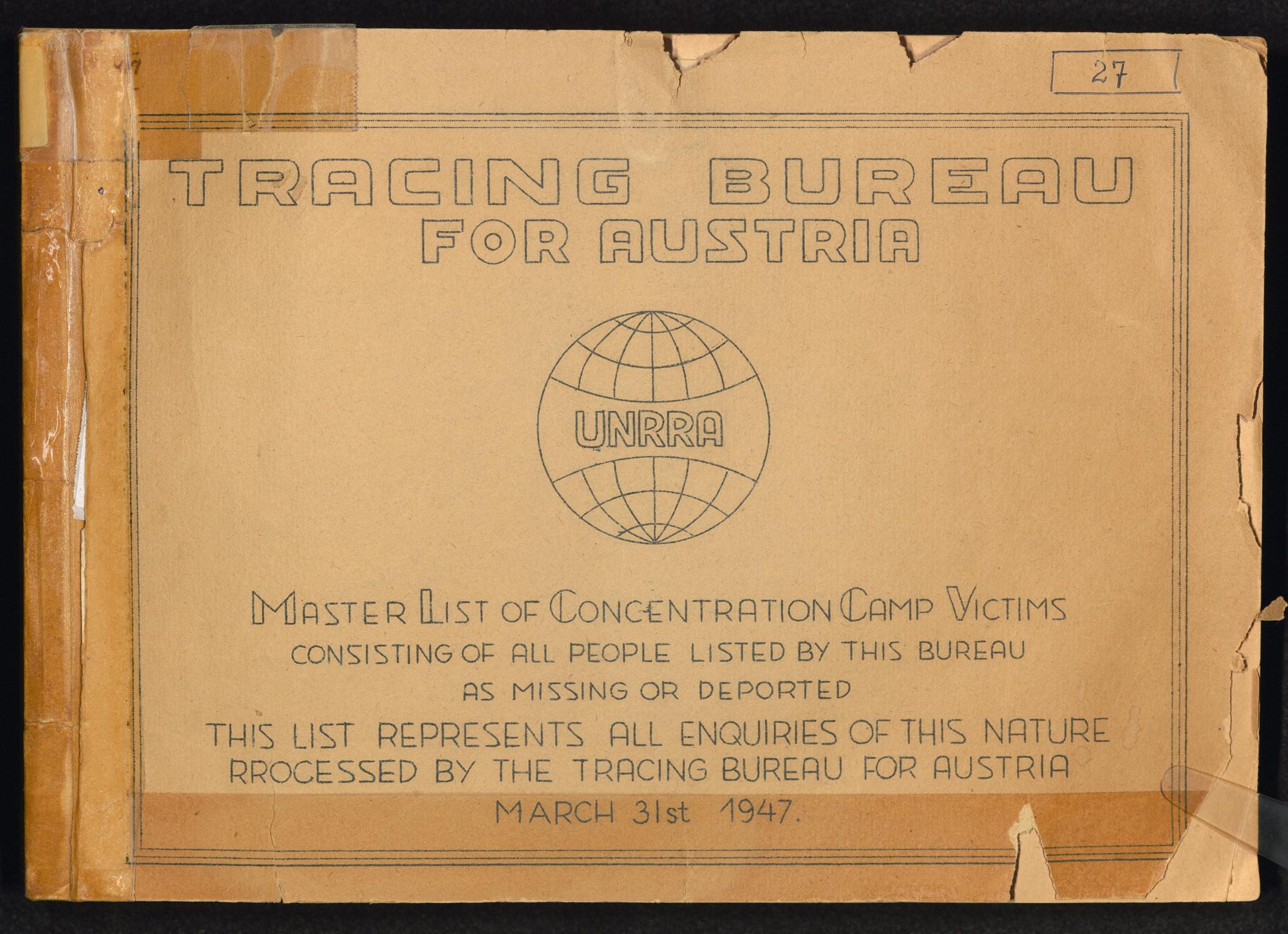 Master List of Concentration Camp Victims : Consisting of all people listed by this bureau as missing or deported / Tracing Bureau for Austria